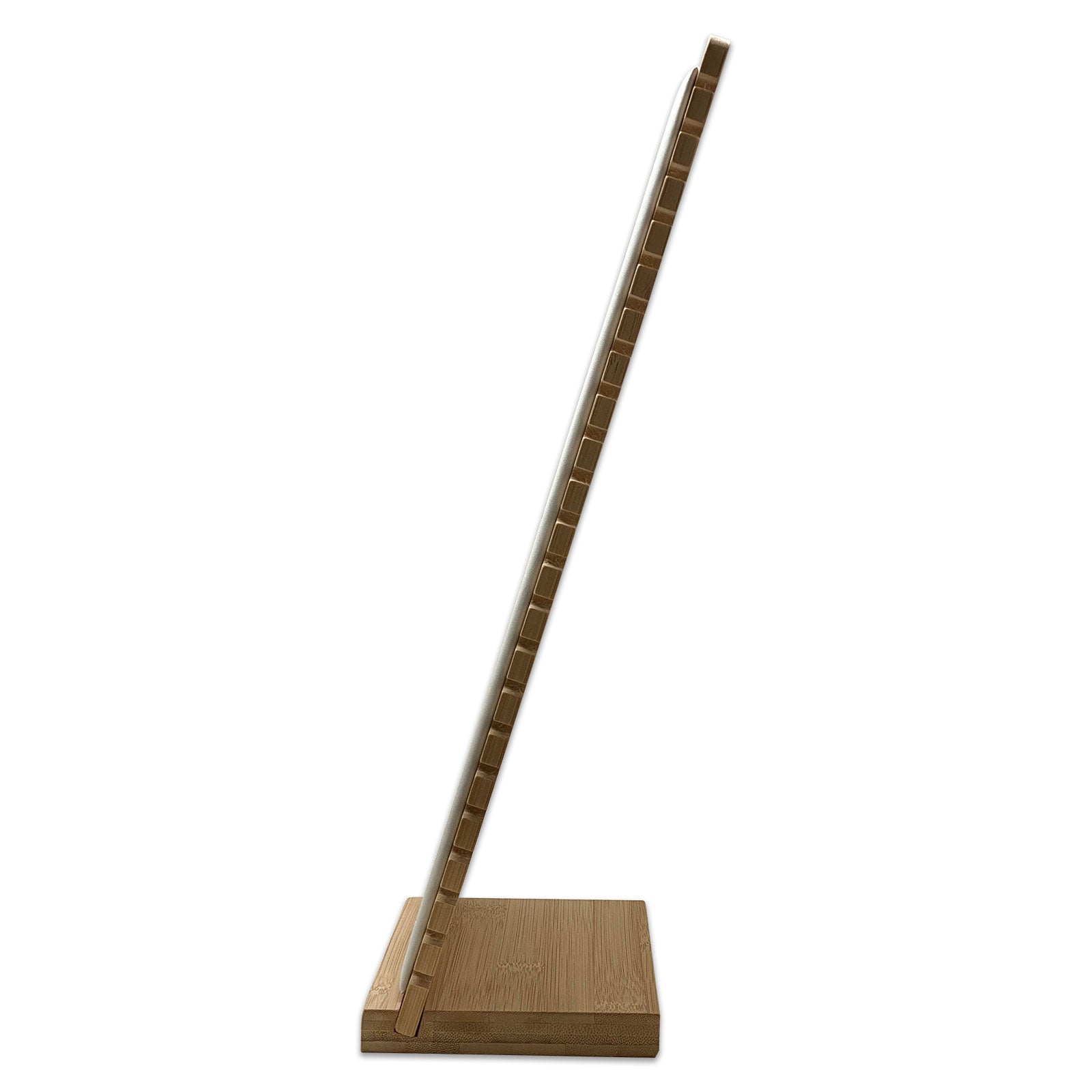 - A two-piece bamboo necklace display that can be used horizontally or vertically.