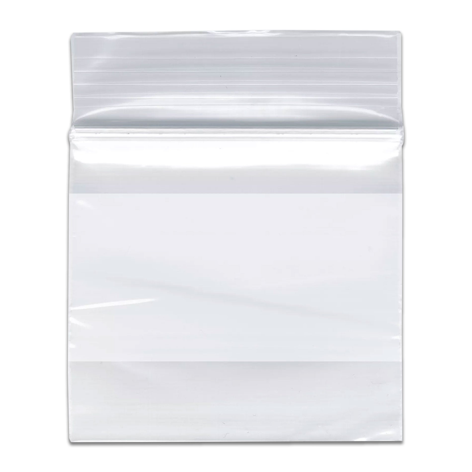 4" x 4" White Block Clear Zip Lock 2 Mil Plastic Bags