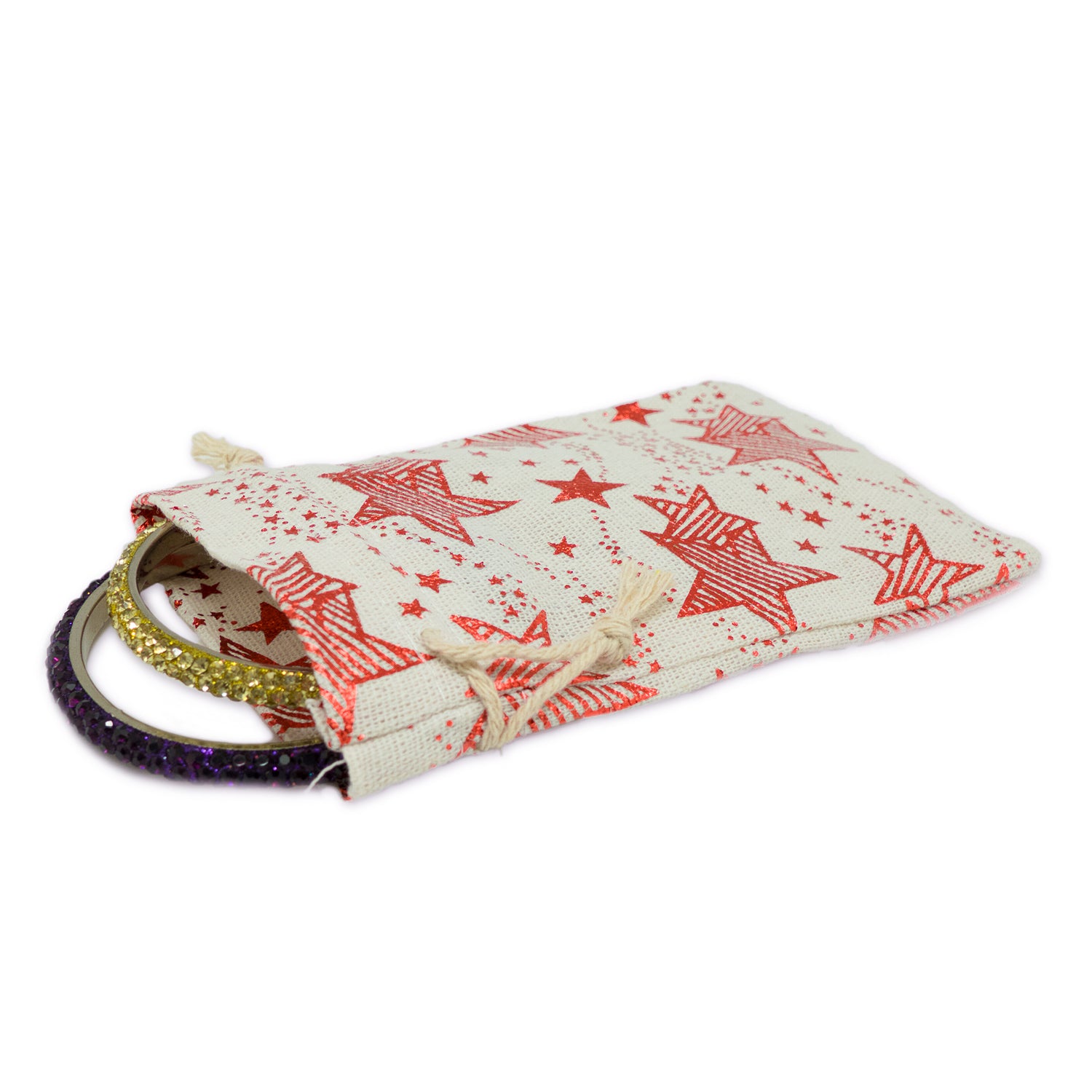 4" x 6" Cotton Muslin Red Star Drawstring Gift Bags