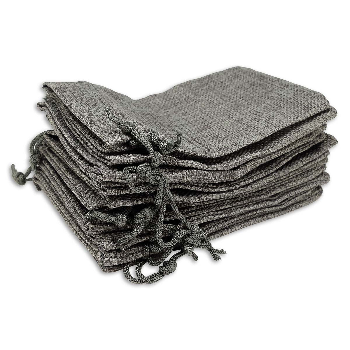 4" x 6" Gray Linen Burlap Drawstring Gift Bags