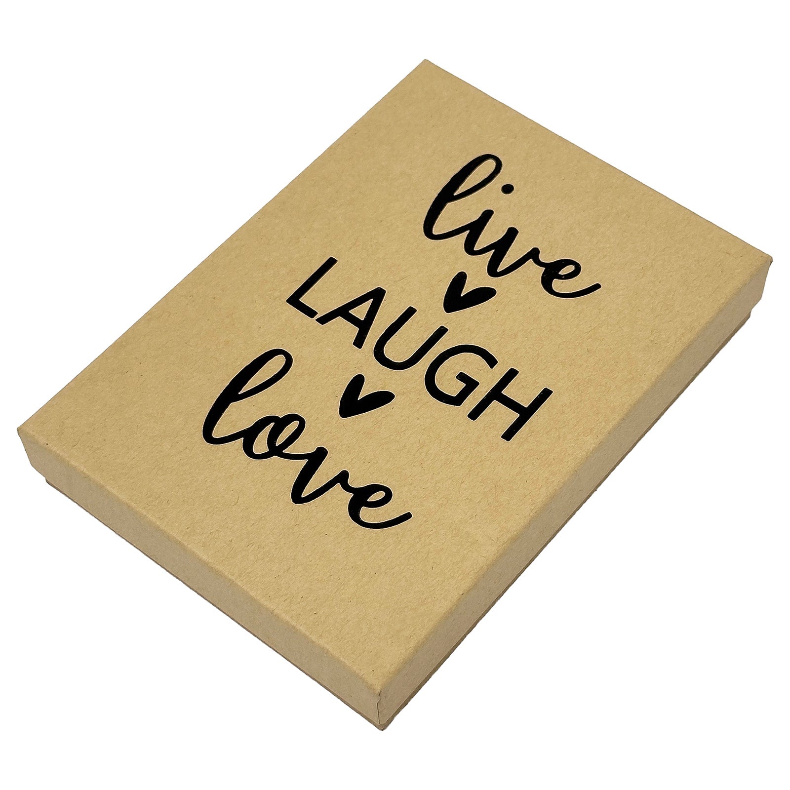 5 7/16" x 3 15/16" Kraft and Black "Live Laugh Love" Cotton Filled Box
