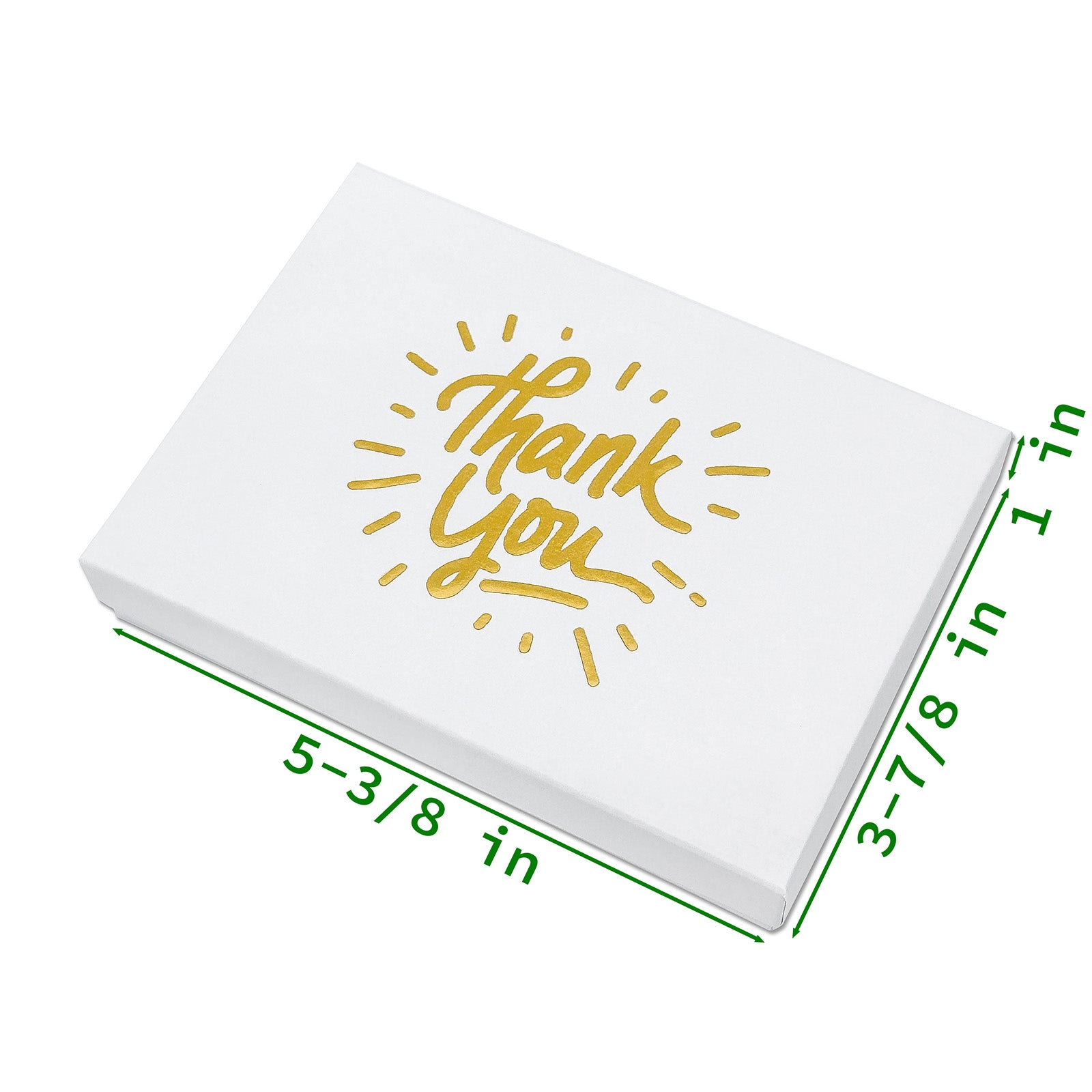 5 7/16" x 3 15/16" Matte White and Gold "Thank You" Cotton Filled Box
