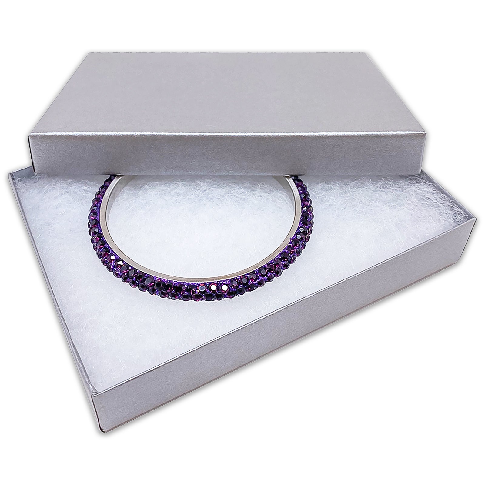 Cotton-filled boxes are available in black, blue, gold, gray, green, kraft, orange, pink, purple, red, silver, teal, yellow, rose gold and more. Visit our Shop by Color page to view all available colors.