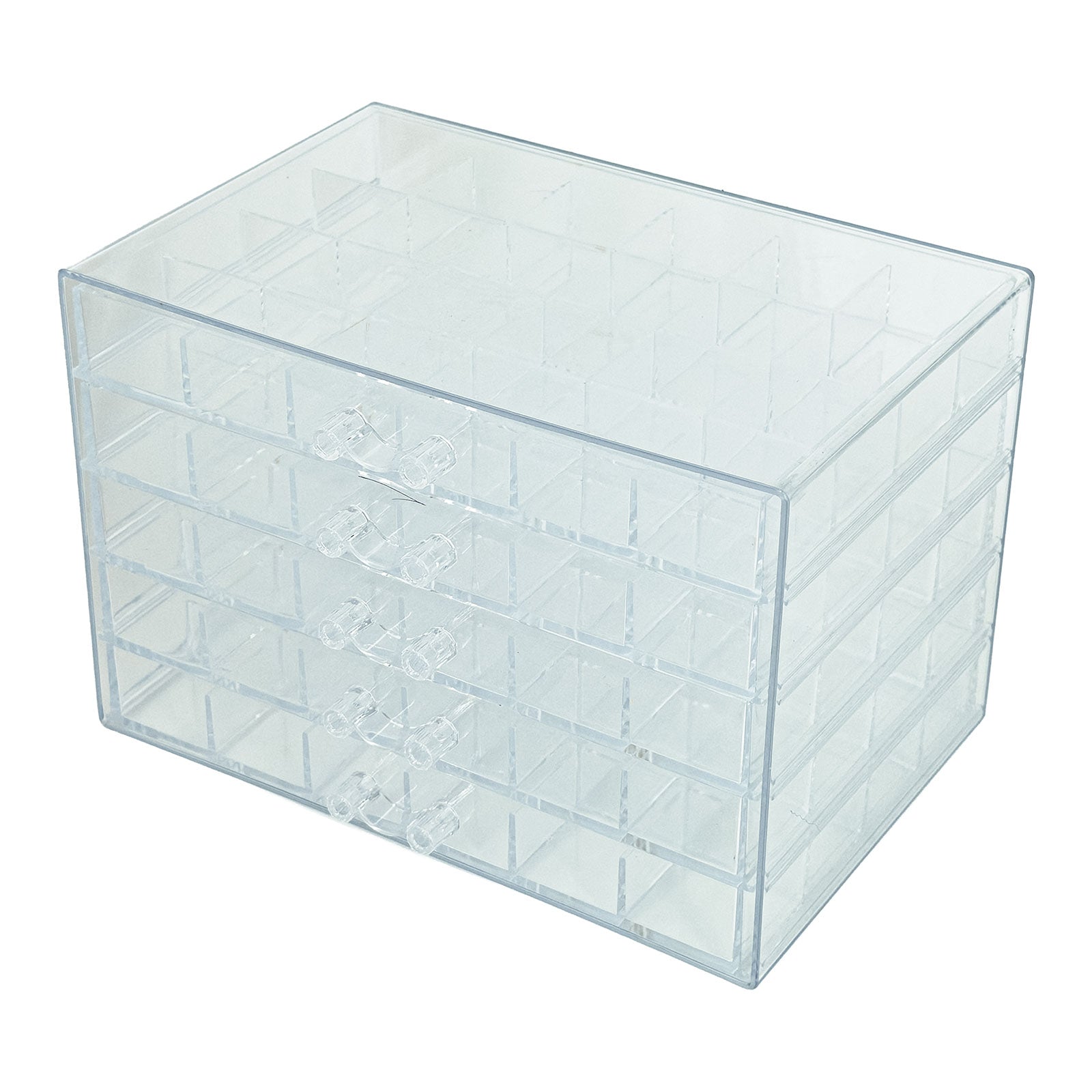 - A clear plastic storage box with 5 drawers.