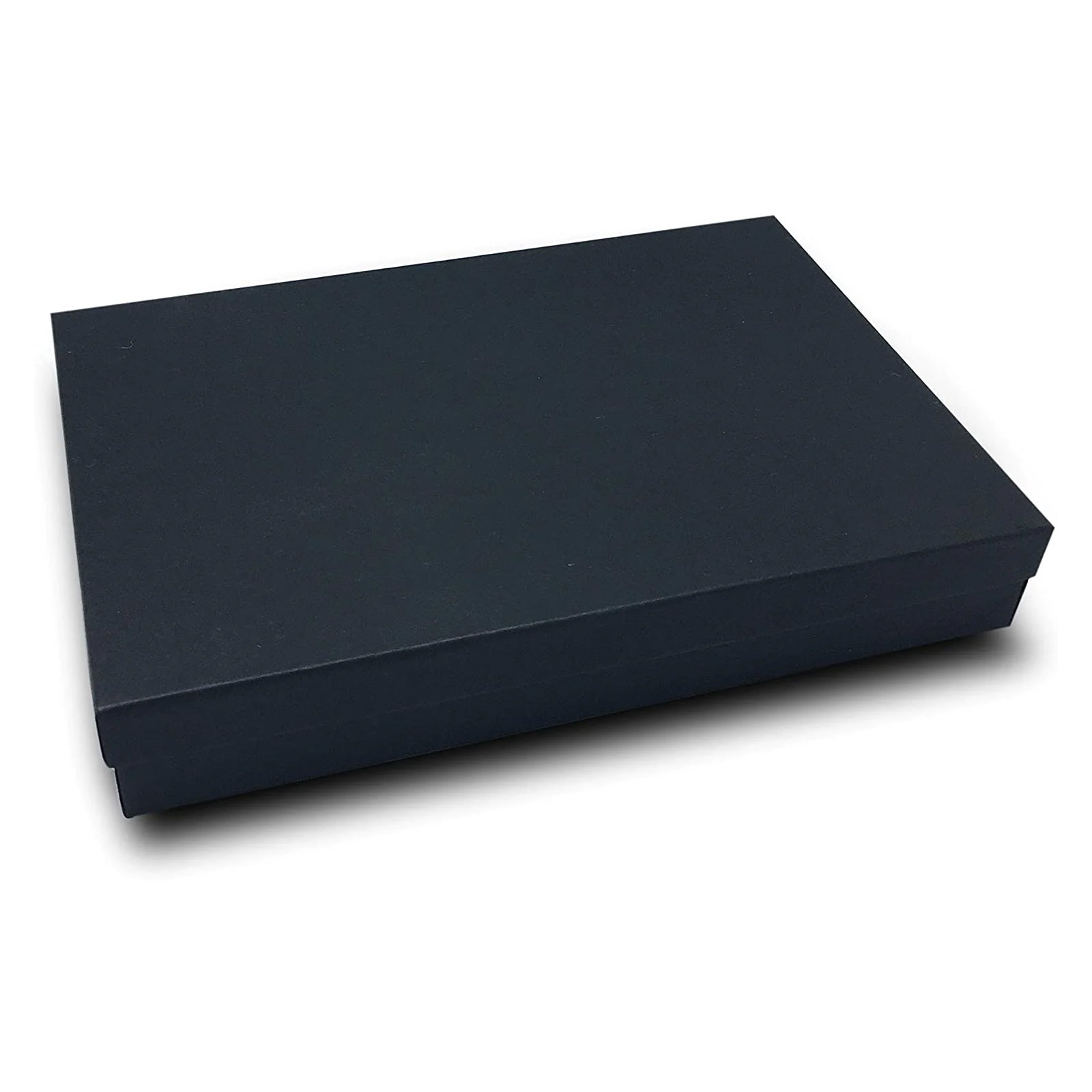 Made of sturdy cardboard with a snug-fitting lid, these boxes can withstand a lot for its size. A thick synthetic cotton fill prevents items from being damaged.