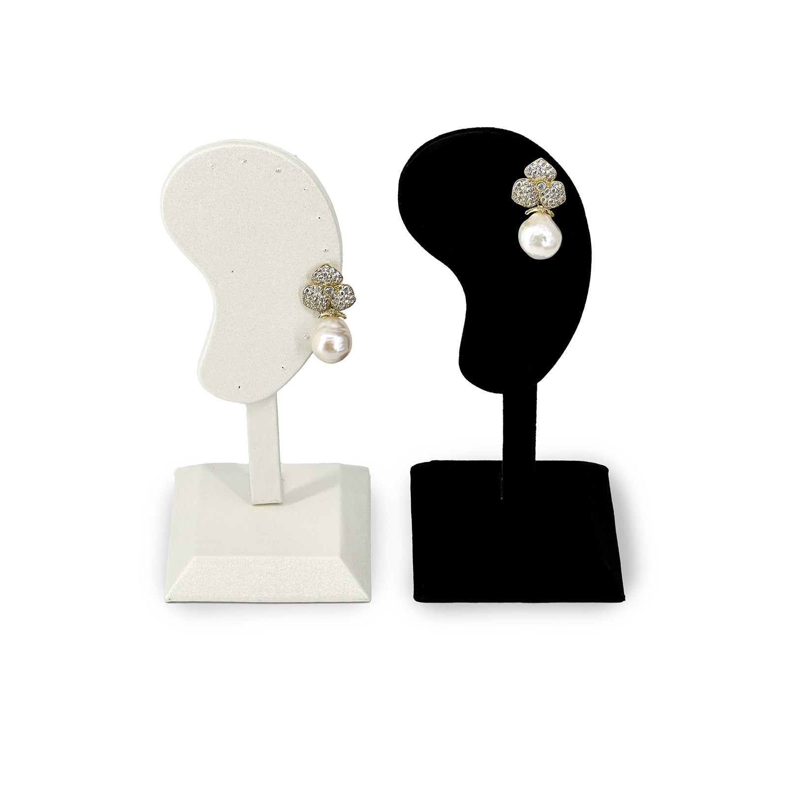 - Display your earrings with this black velvet ear-shaped stand.