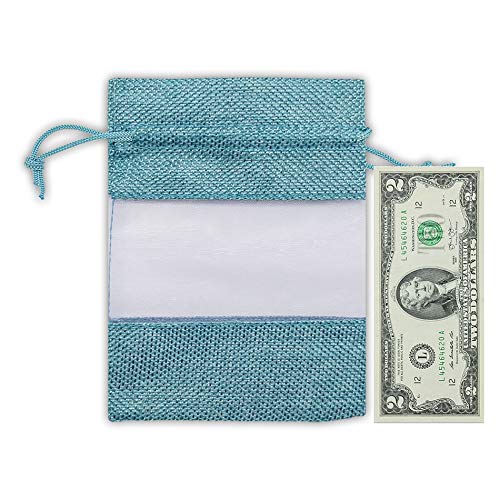 6 1/4" x 9" Linen Burlap and Sheer Organza Teal Blue Gift Bag