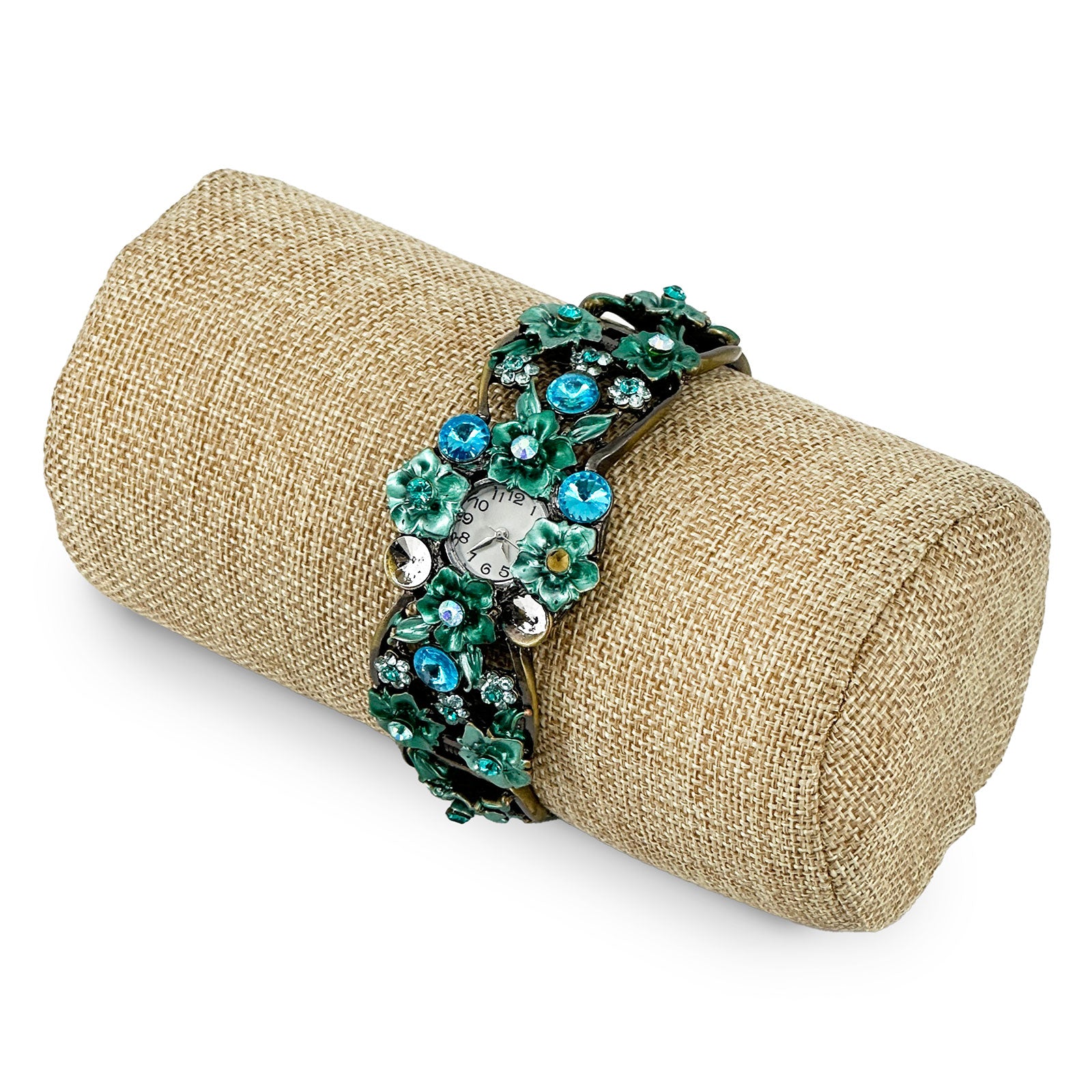 - Display your bracelets, watches, and bangles with this burlap display roll.