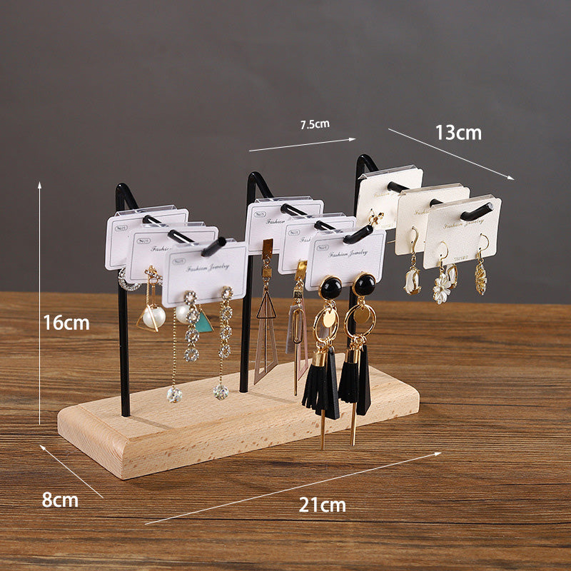 6 Hook Black Metal Earring Card Display Stand with Wood Base