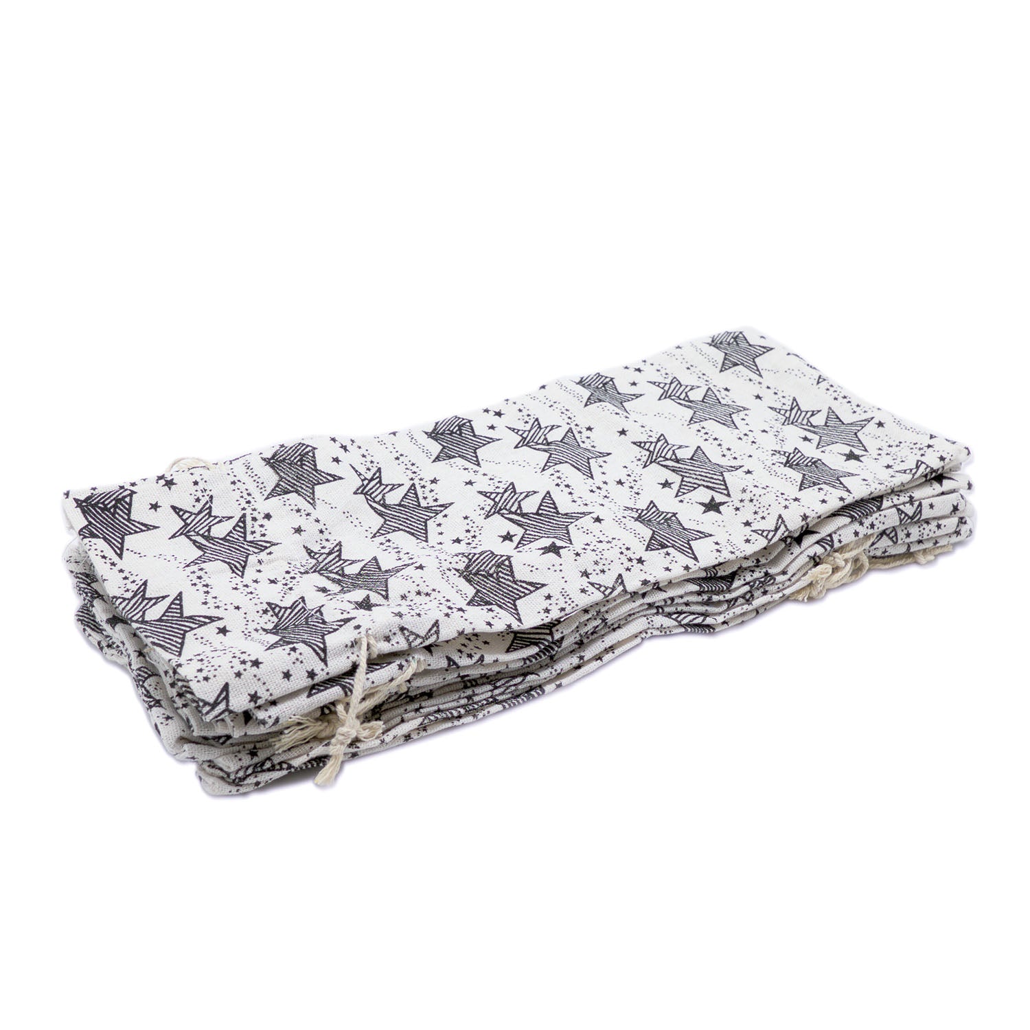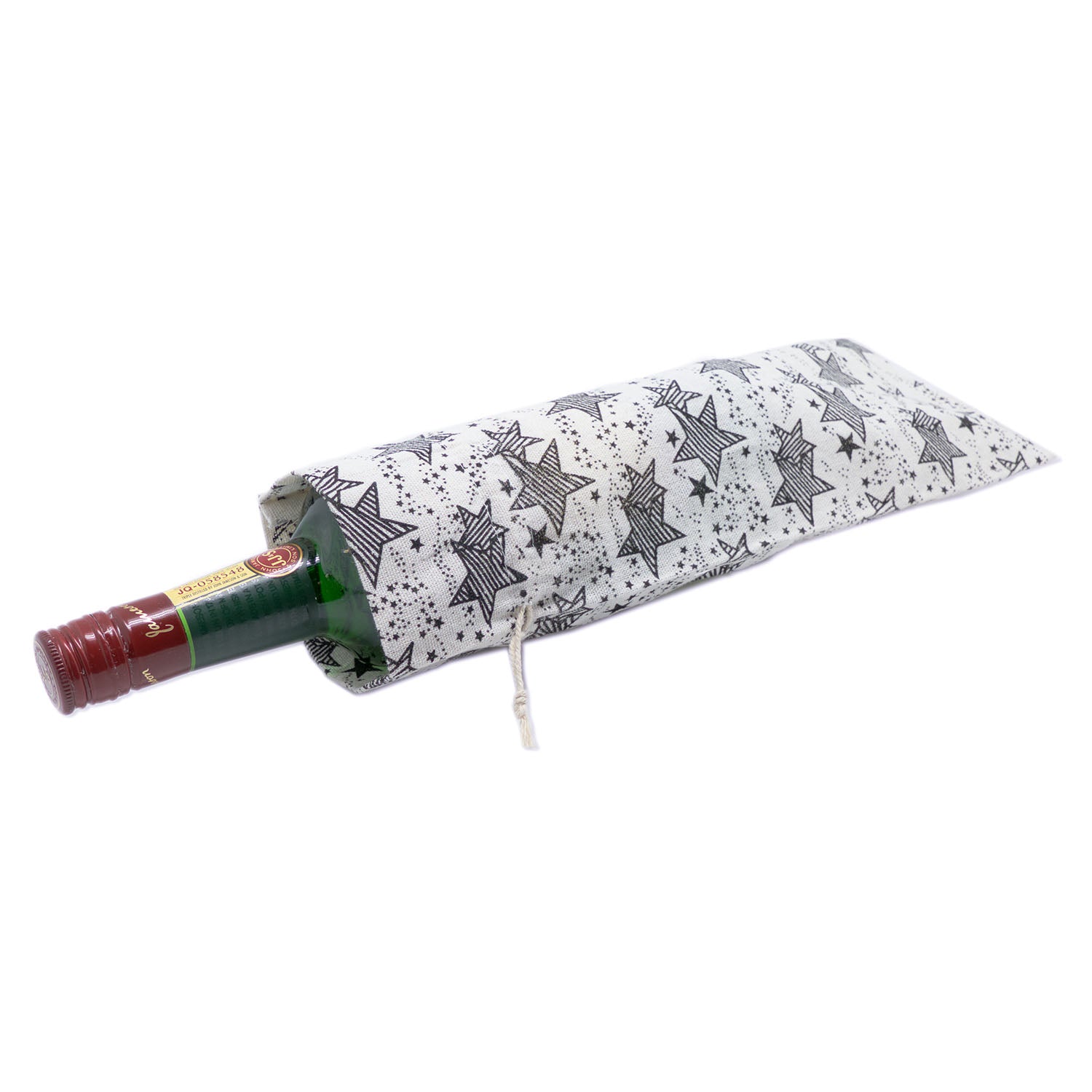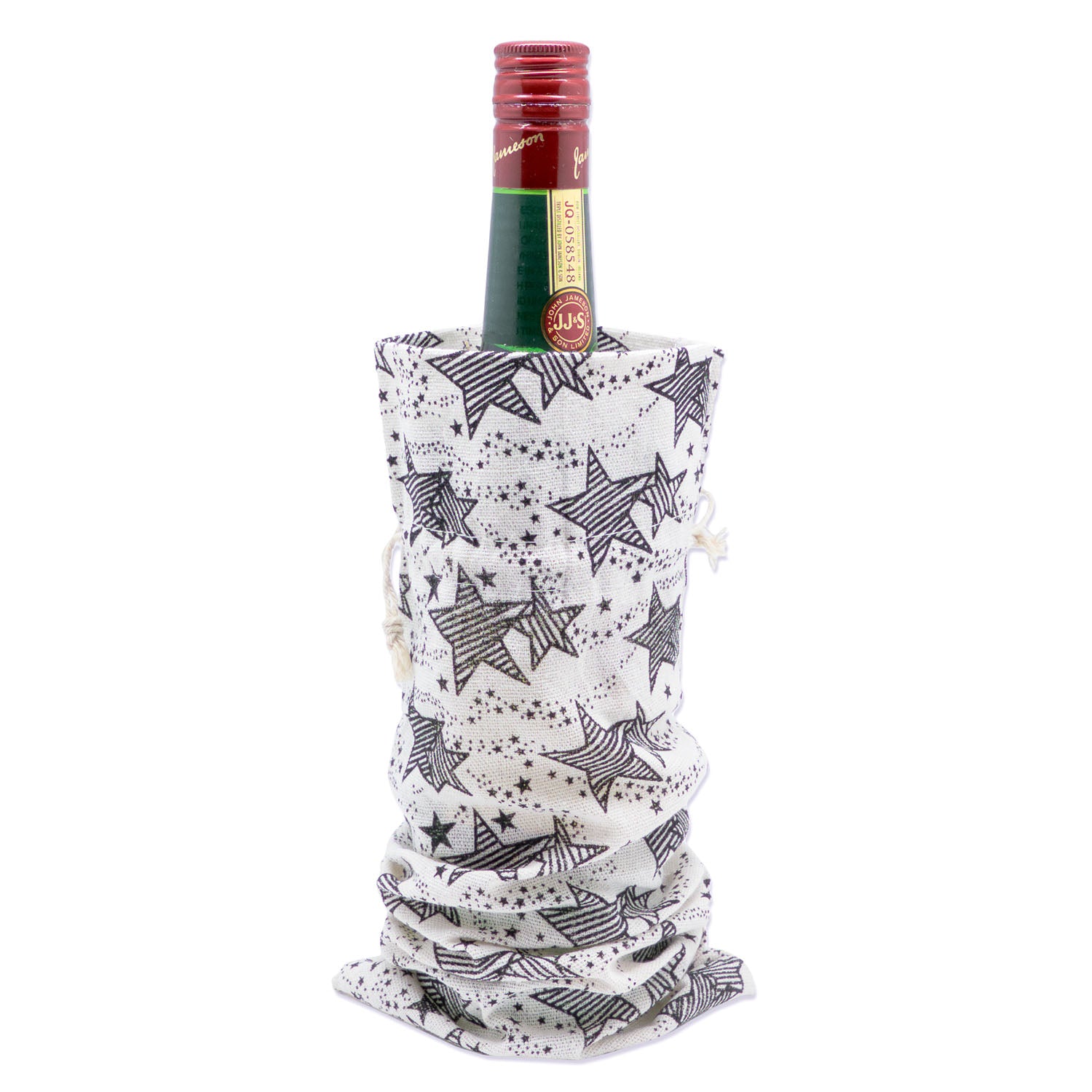 6" x 14" Cotton Muslin Black Star Wine Bottle Drawstring Gift Bags
