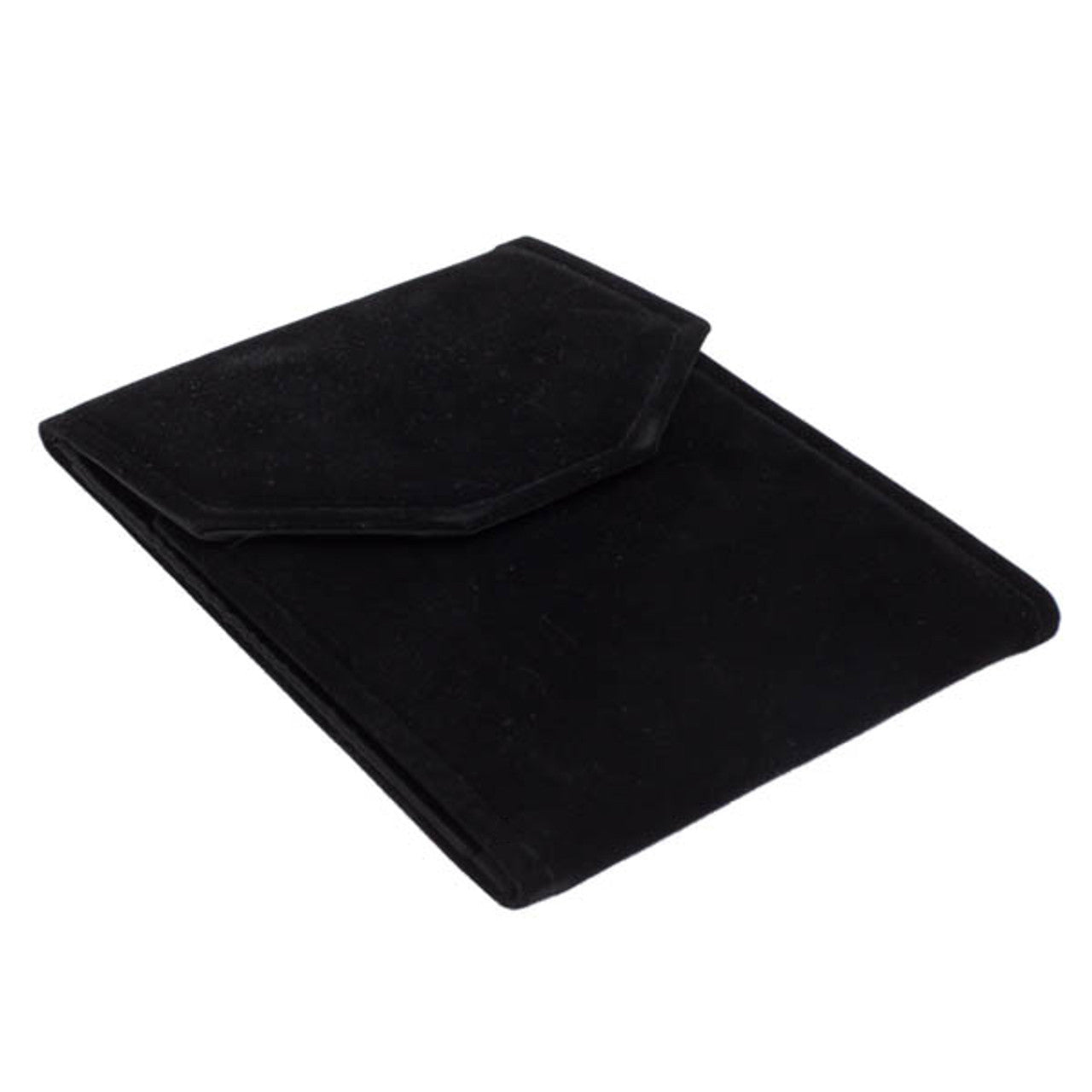6" x 8 1/4" Black Velvet Folding Necklace Pouch with Silk Interior