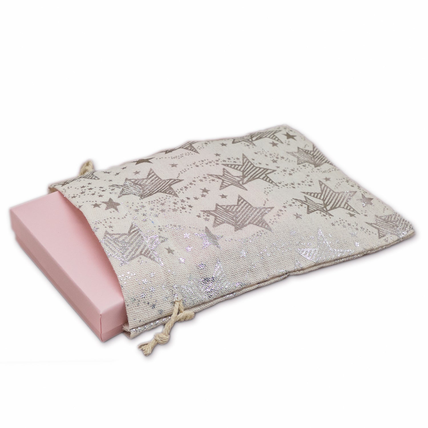 6" x 8" Cotton Muslin Silver Star Drawstring Gift Bags