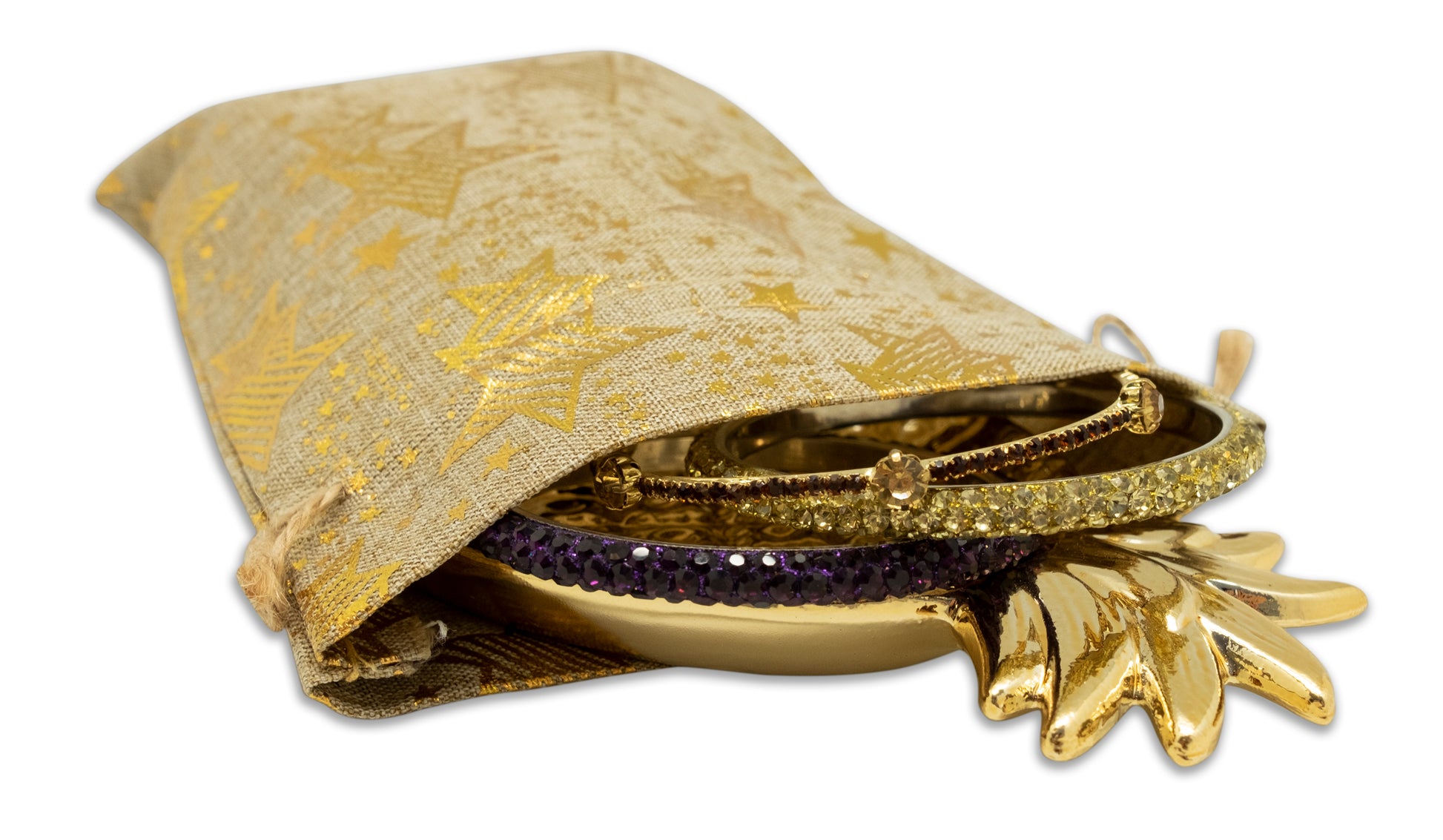 - Features a gold star pattern on the front and back.