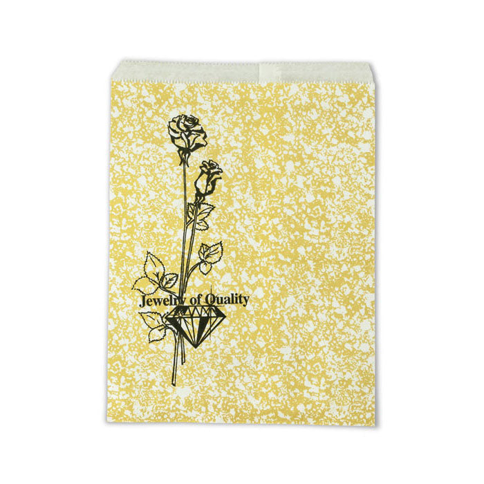 6" x 9" Gold Flat Paper Merchandise Bags with Vintage Rose Art for Jewelry or Small Gifts