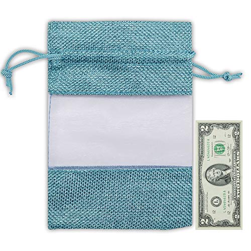 7 1/2" x 11 1/2" Linen Burlap and Sheer Organza Teal Blue Gift Bag