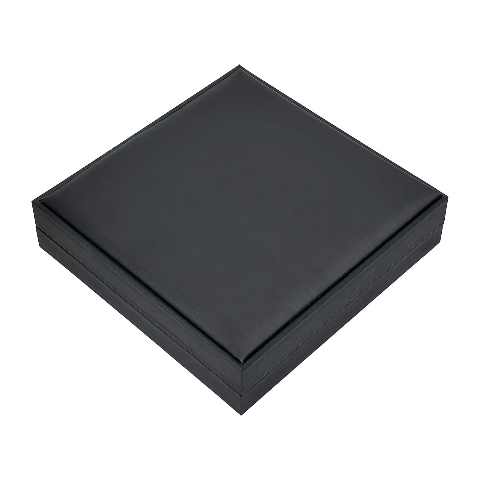 7 1/2" x 7 1/2" Deluxe Black Leatherette Silk Grain Necklace Jewelry Box