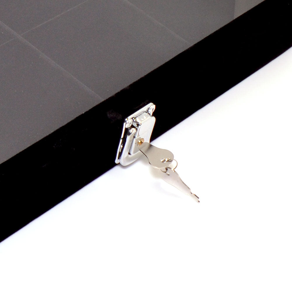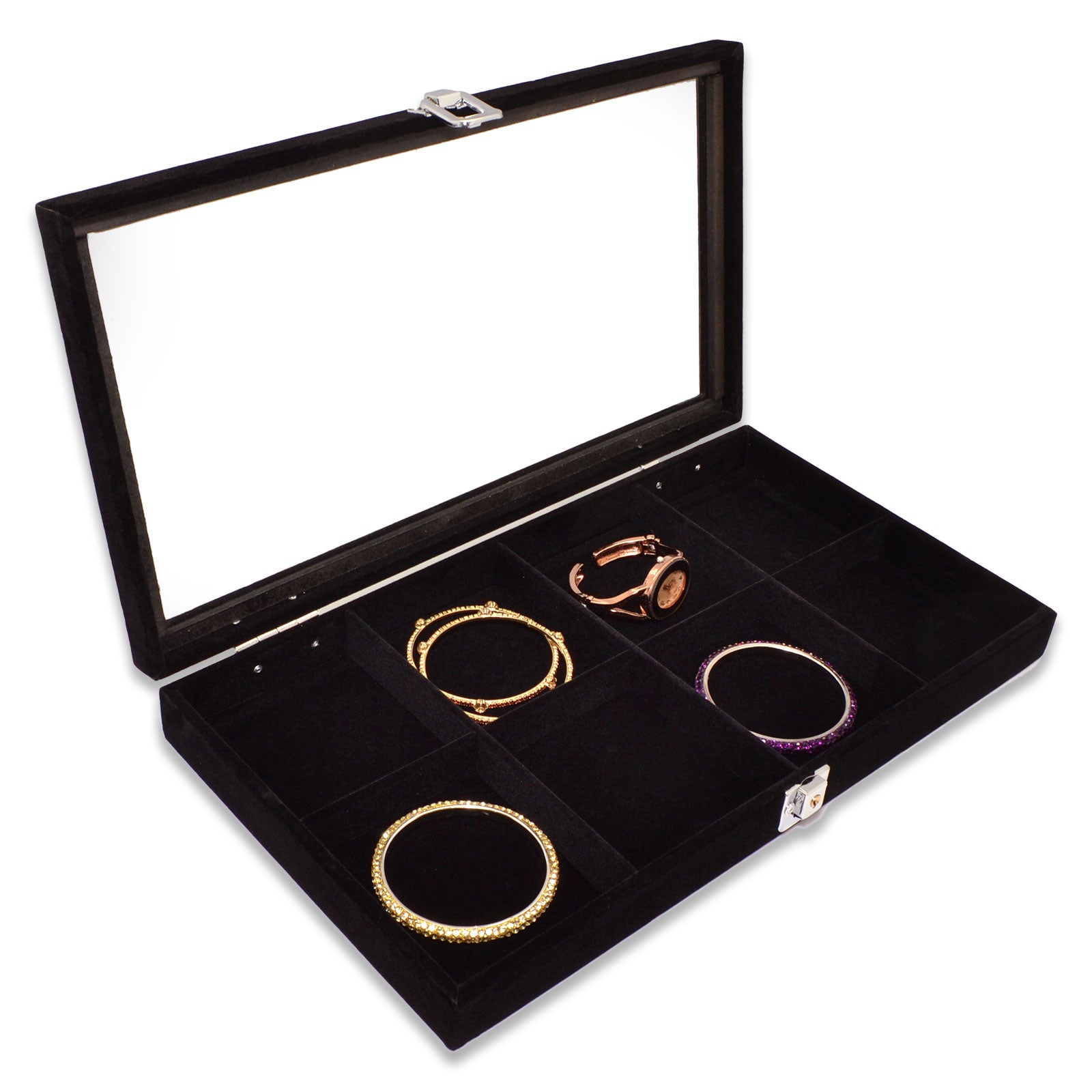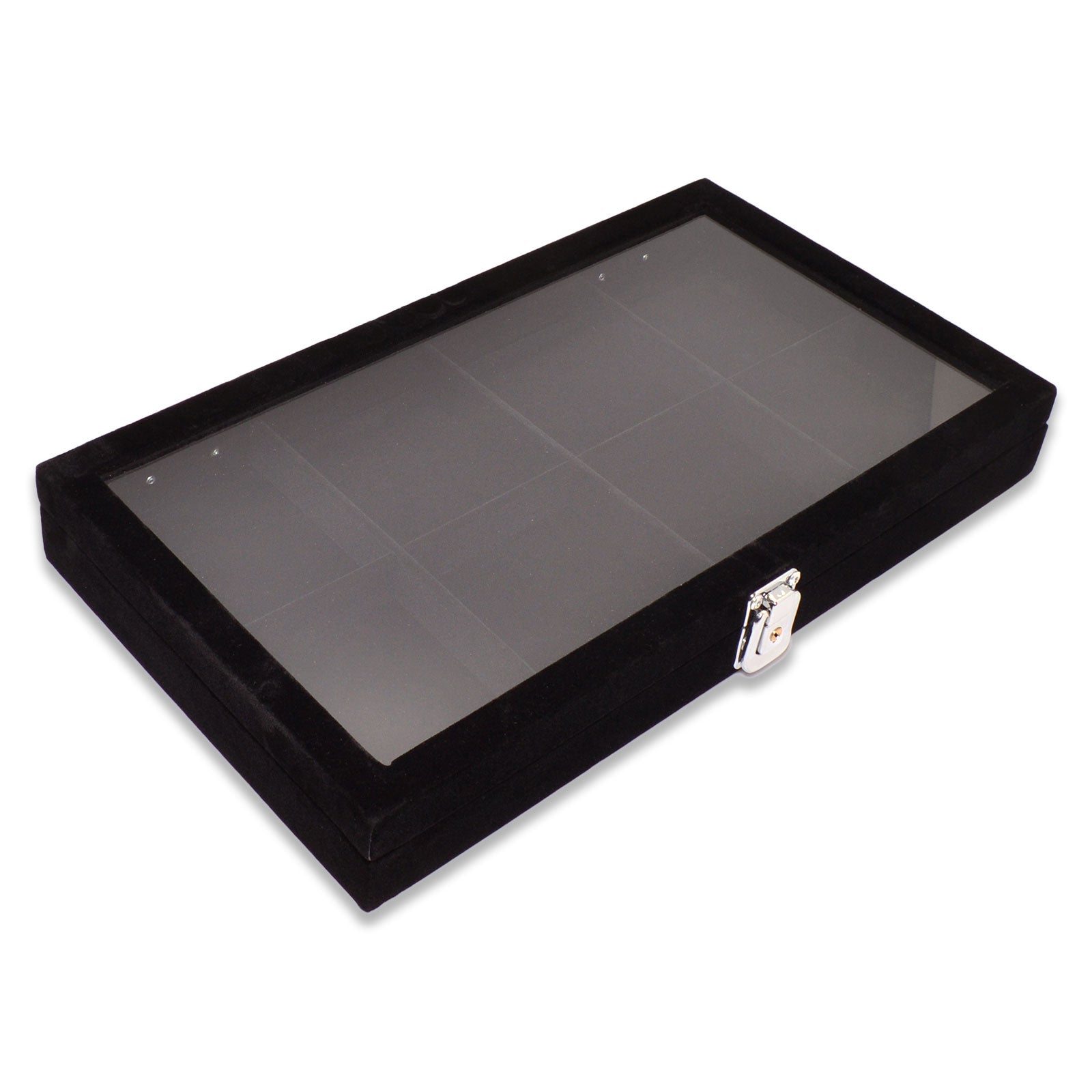14 3/4" x 8 1/4" 8 Compartment Black Velvet Display Case w/ Glass Top and Key