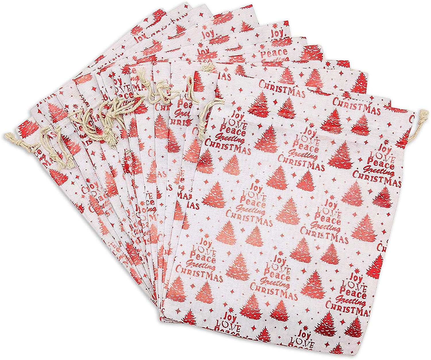 8" x 10" Cotton Muslin Red Christmas Tree Drawstring Gift Bags