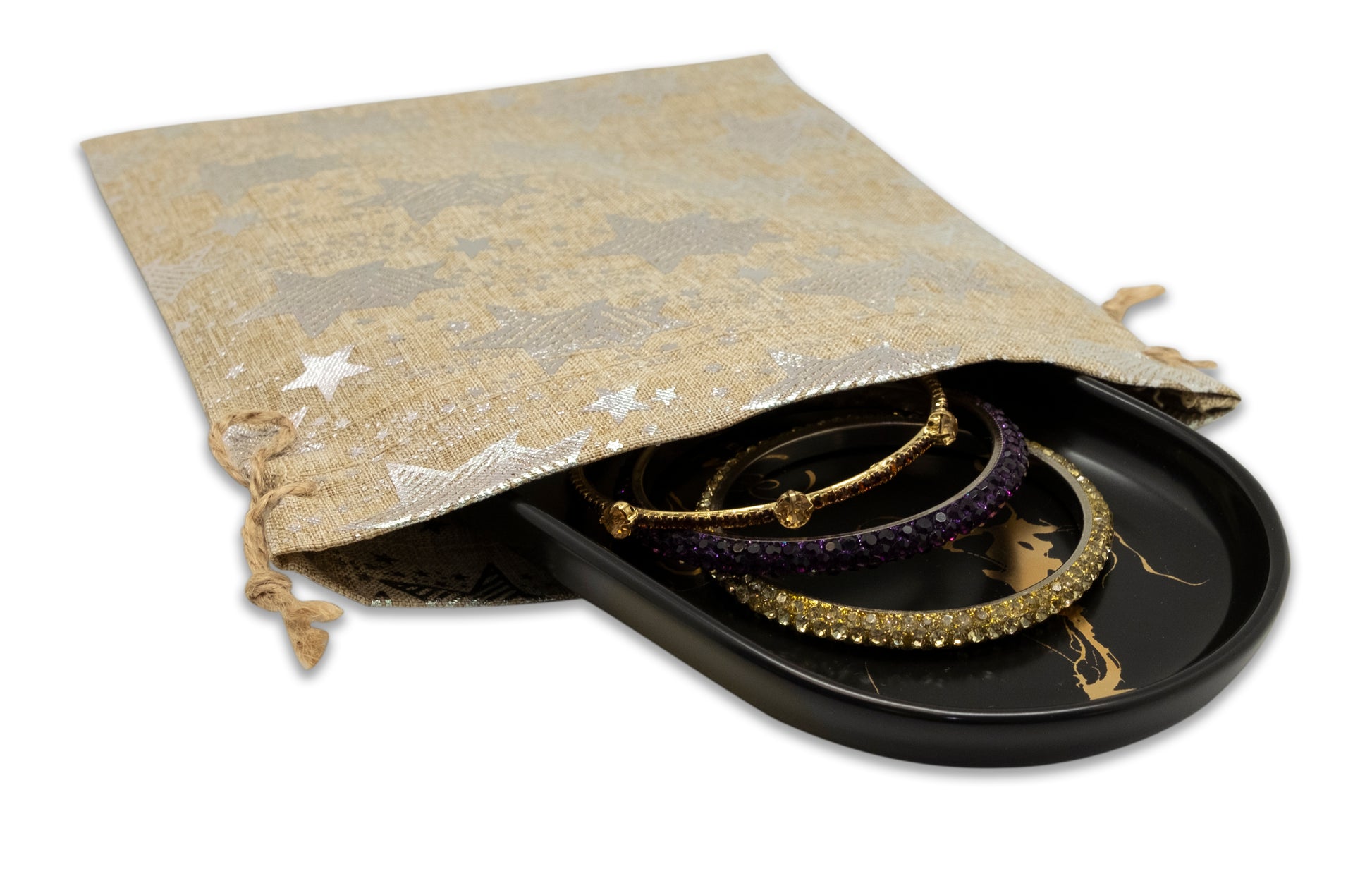 8" x 10" Jute Burlap Silver Star Drawstring Gift Bags