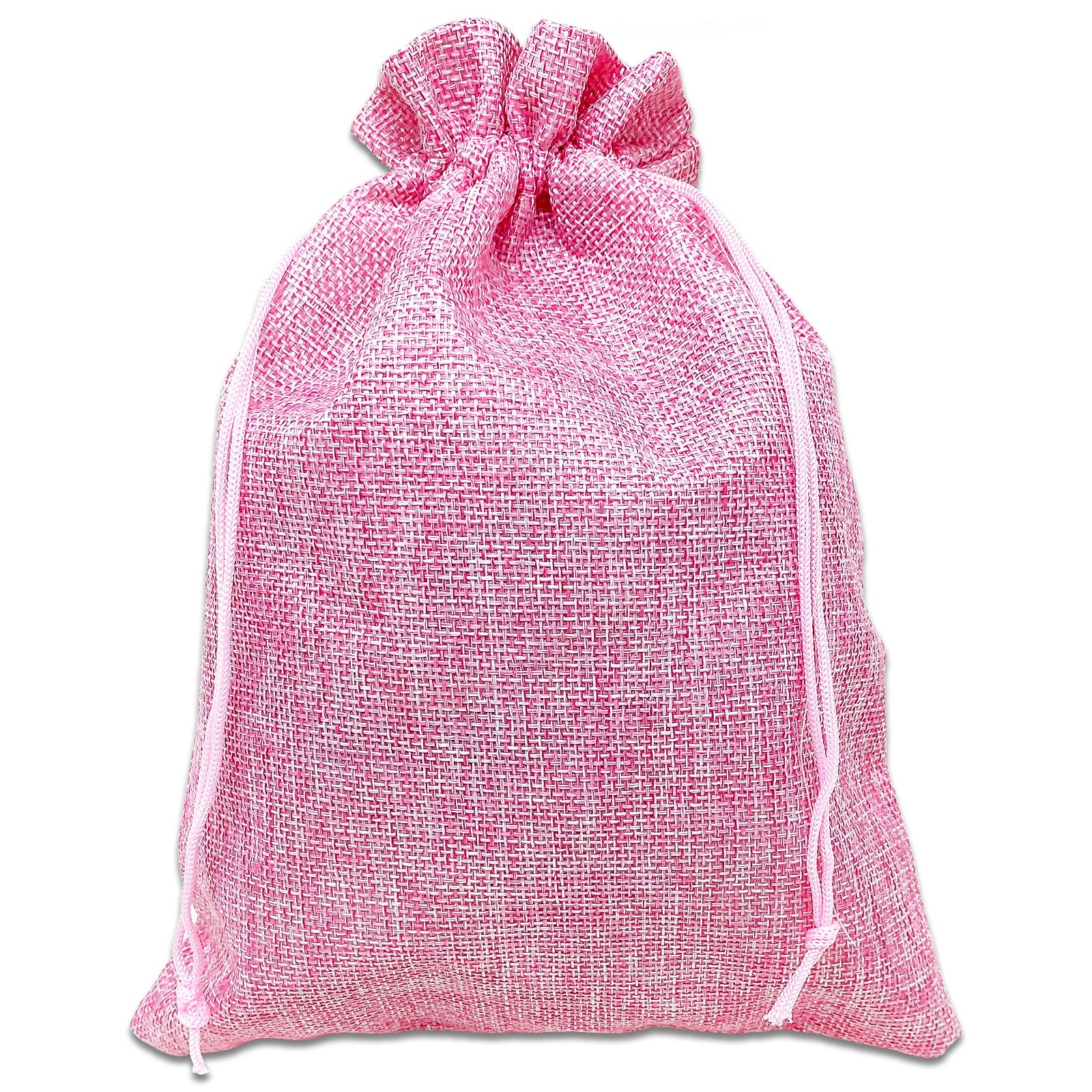 8" x 10" Pink Linen Burlap Drawstring Gift Bags