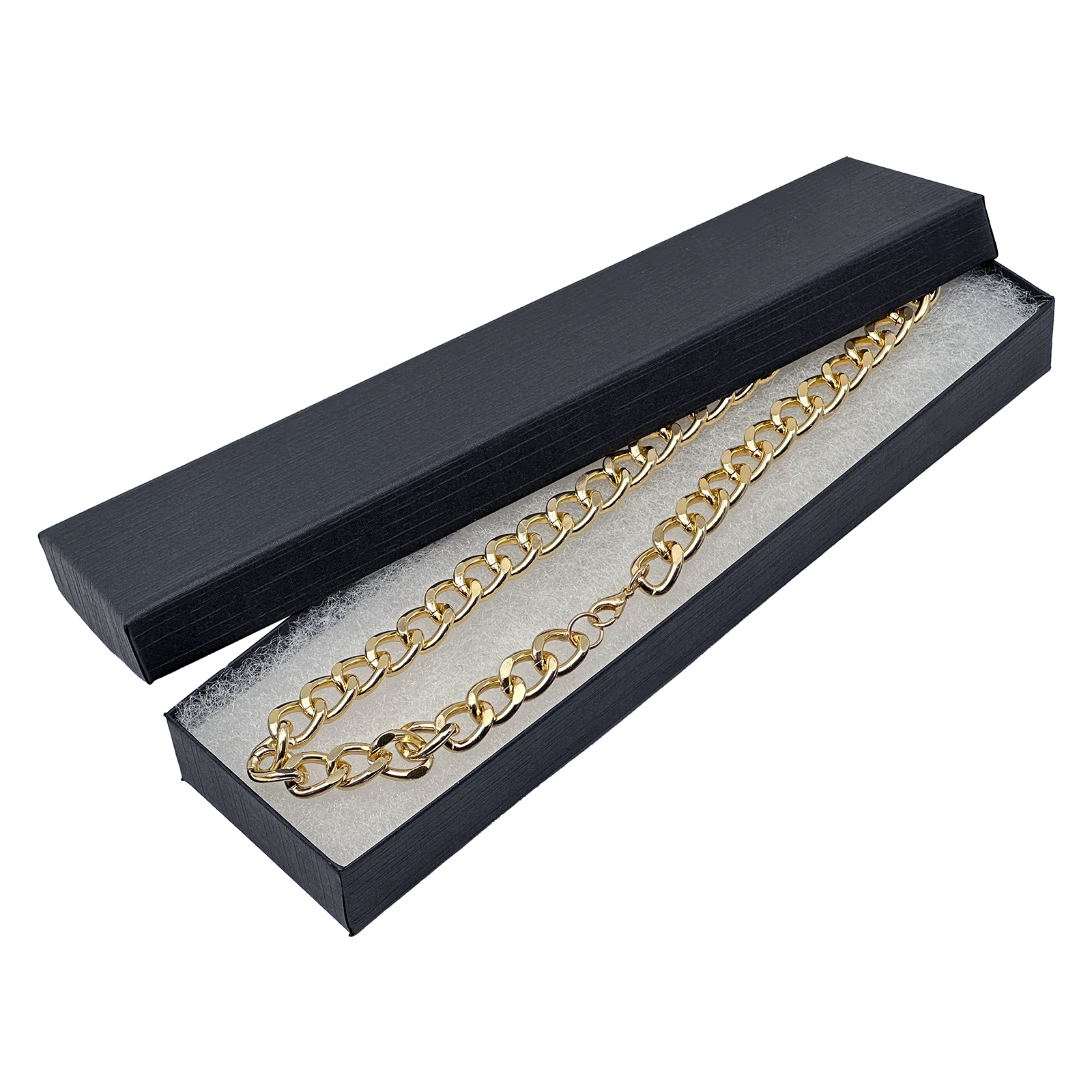 8" x 2" x 1" Black Linen Pattern Cotton Filled Paper Box