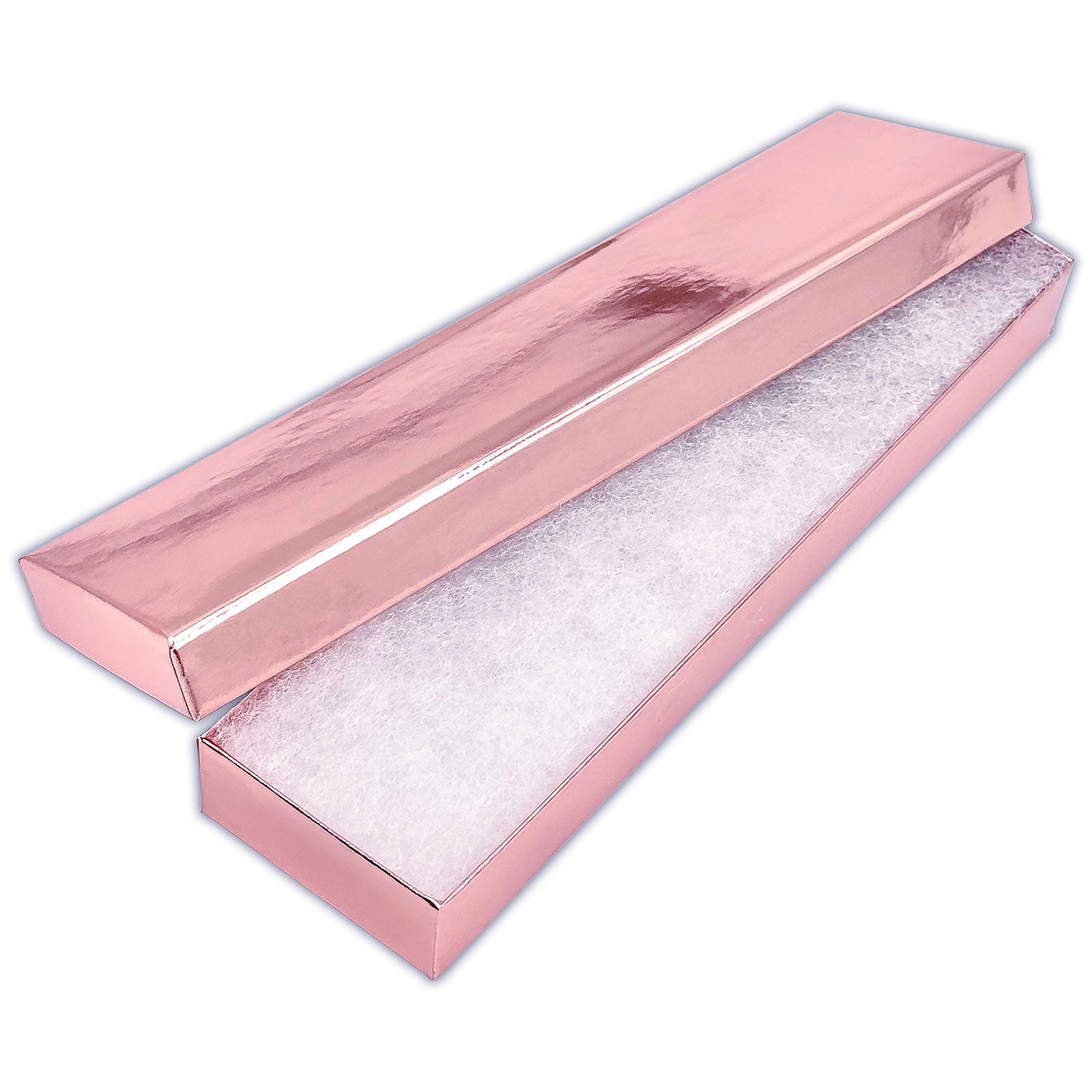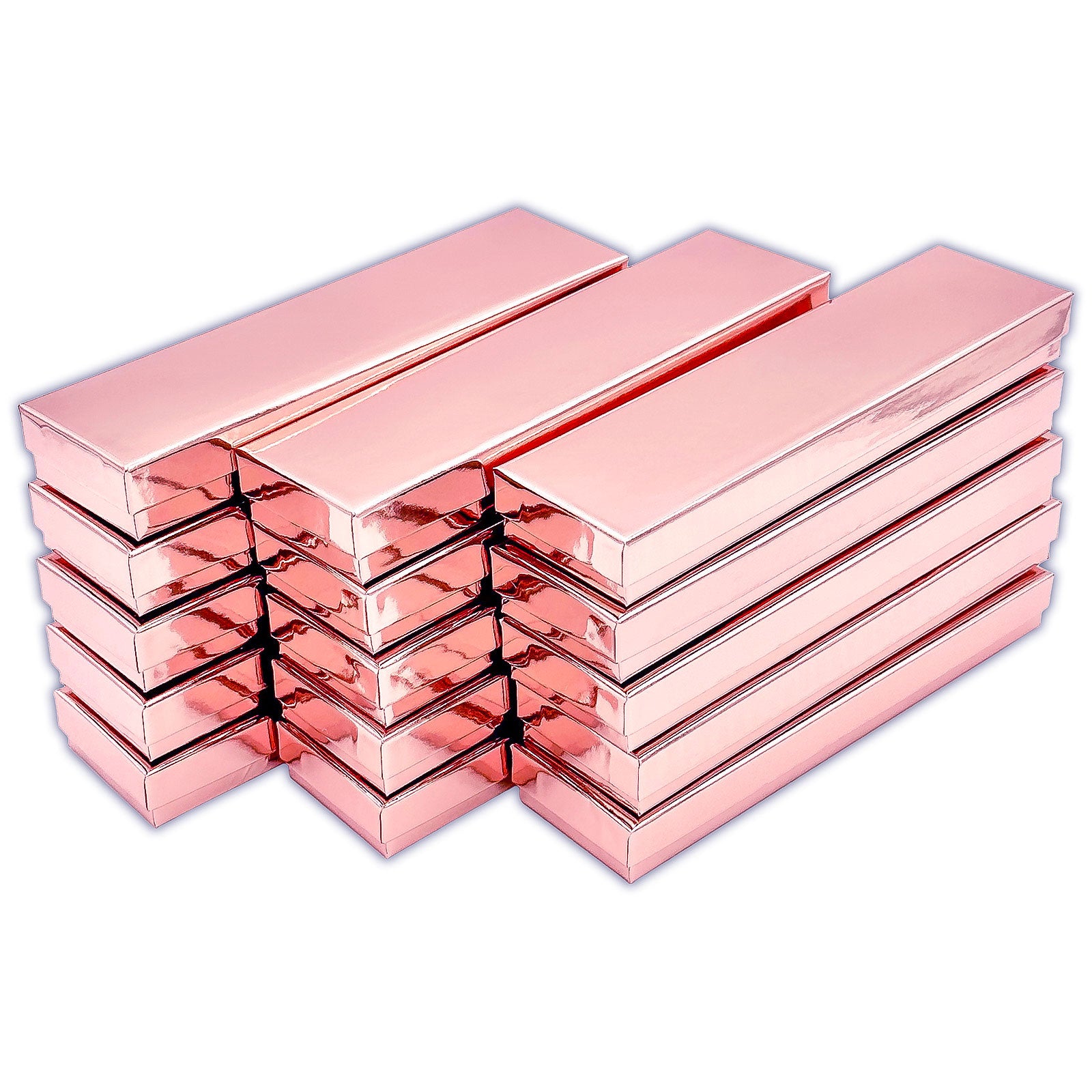 8" x 2" x 1" Metallic Rose Gold Cotton Filled Paper Box