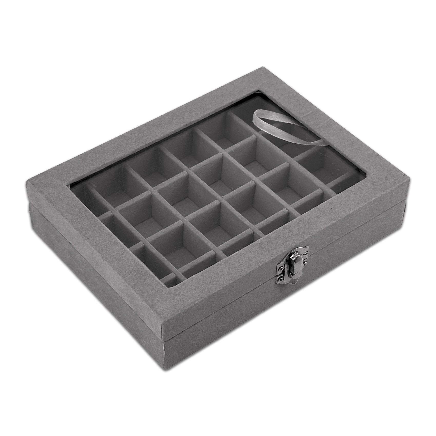 8" x 6" Gray Velvet 24 Compartment Display Case with Glass Top