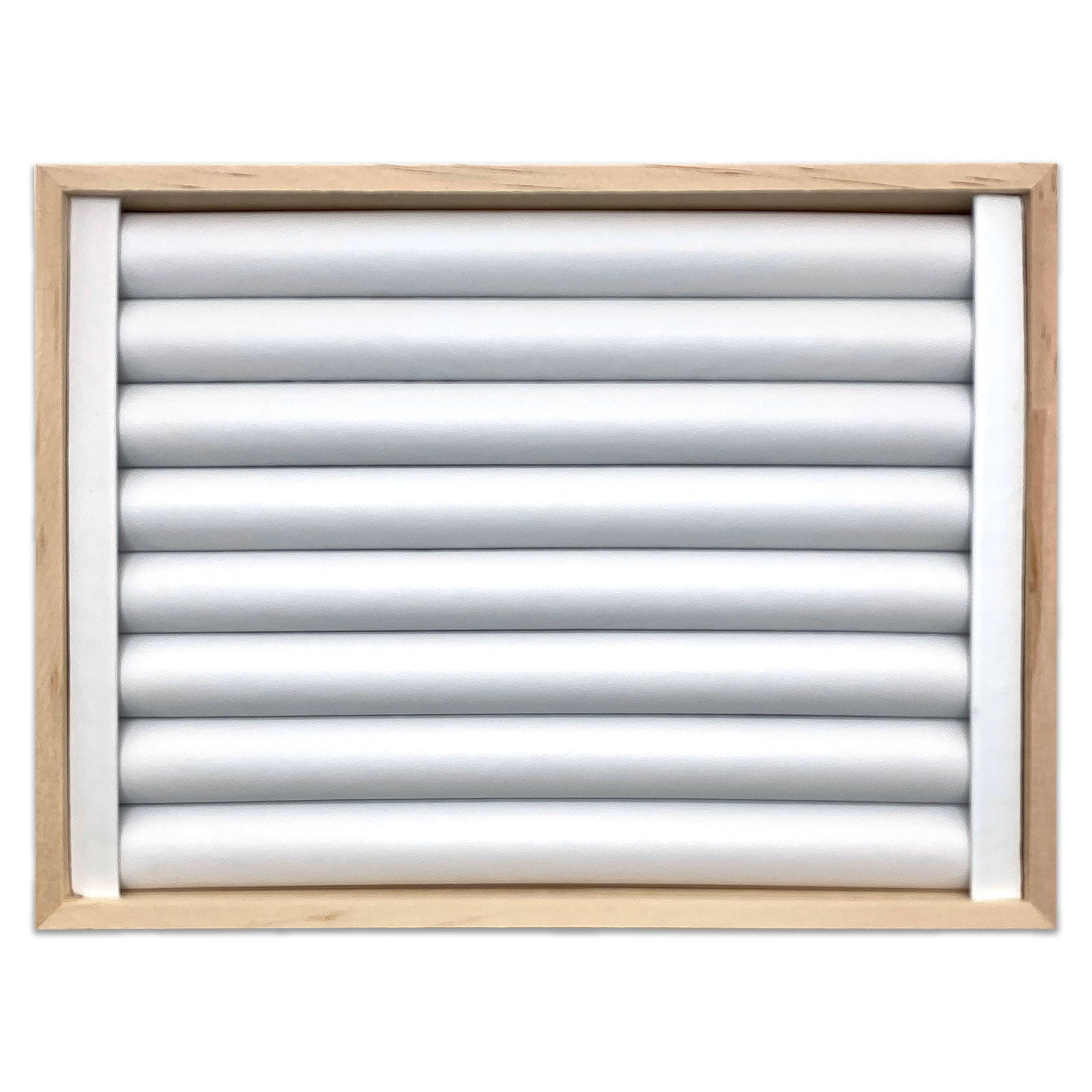9 1/2" x 7" Wood White Leatherette 8 Roll Ring Display Tray