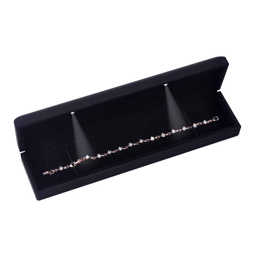 9" x 2 1/8" Matte Black Plastic Bracelet Jewelry Box with LED Light