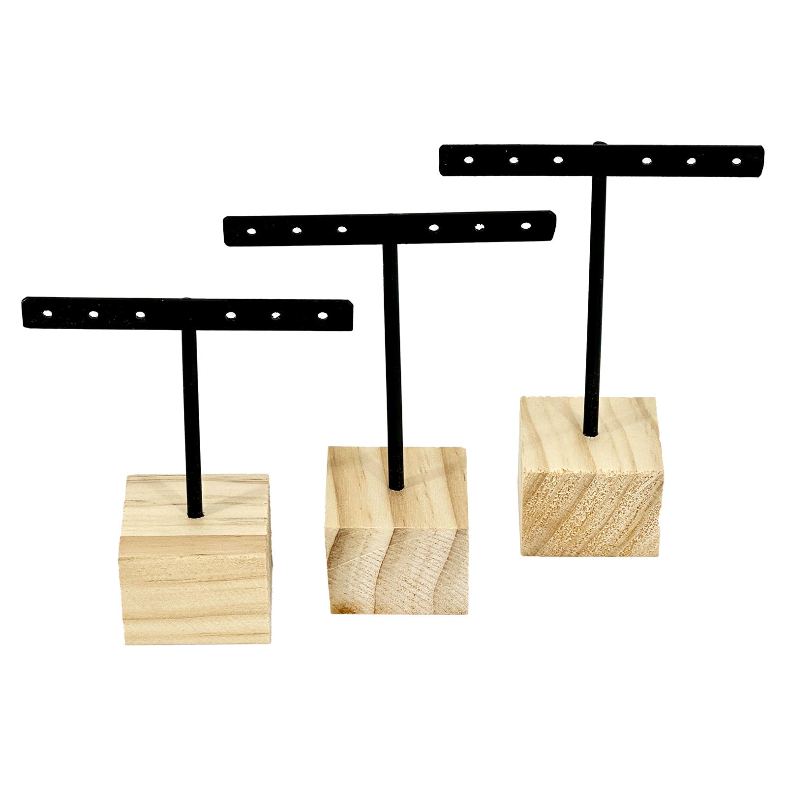 3 Tier Black Metal and Wood T-Bar Jewelry Display Stand Set