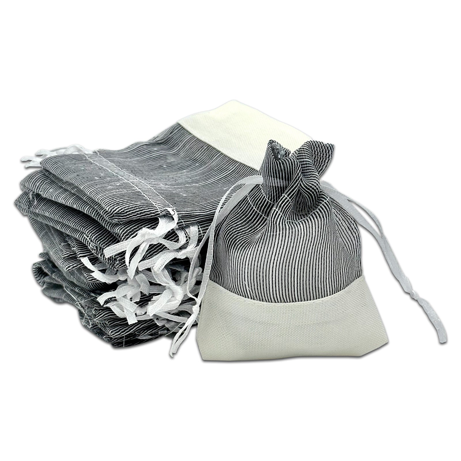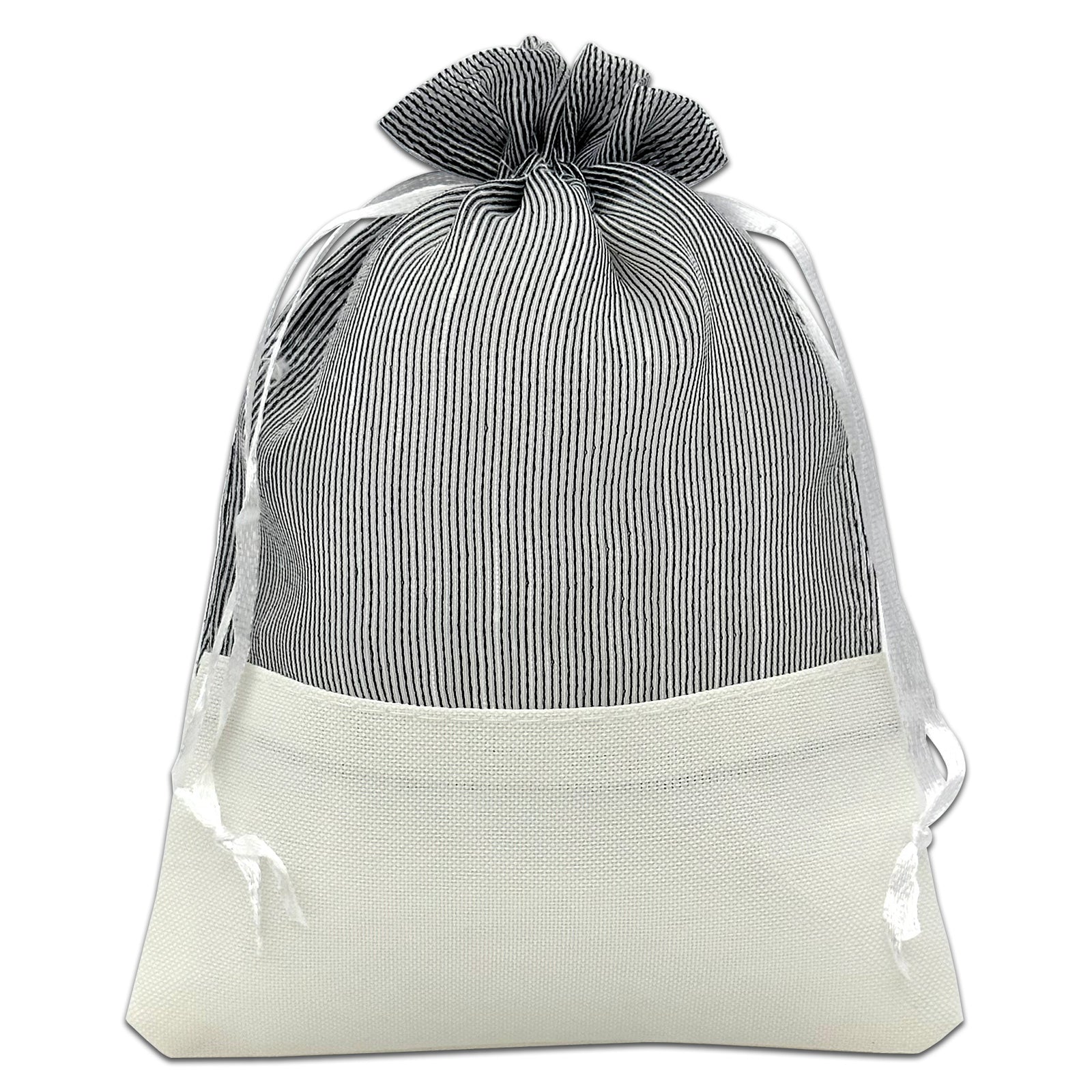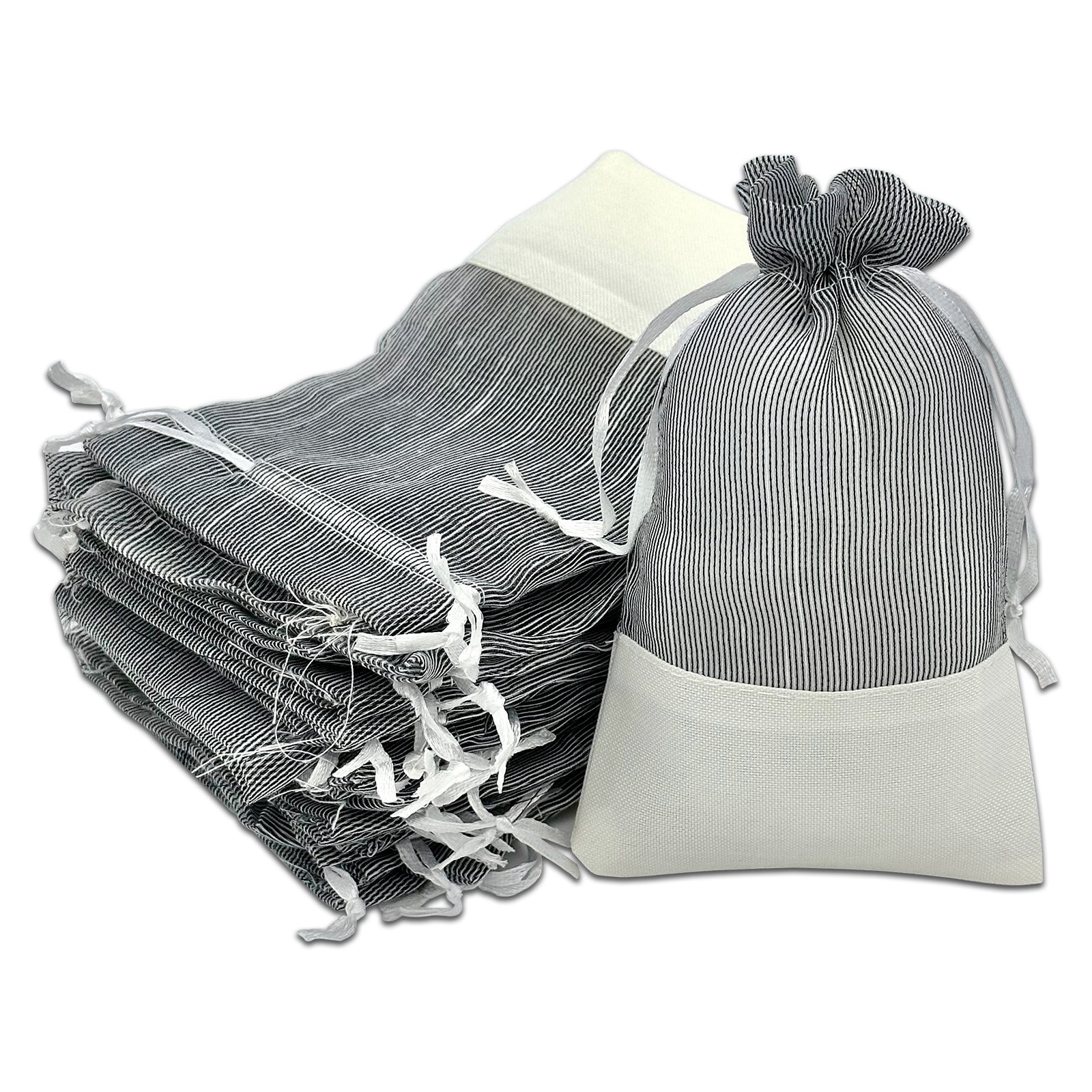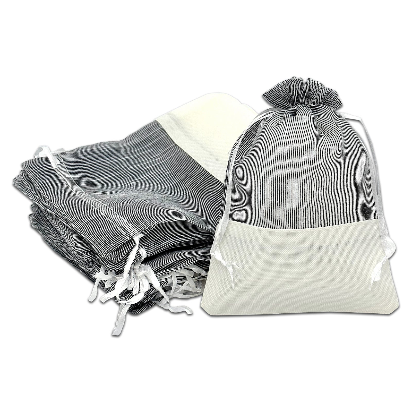 Black Organza and White Linen Drawstring Pouch Gift Bags