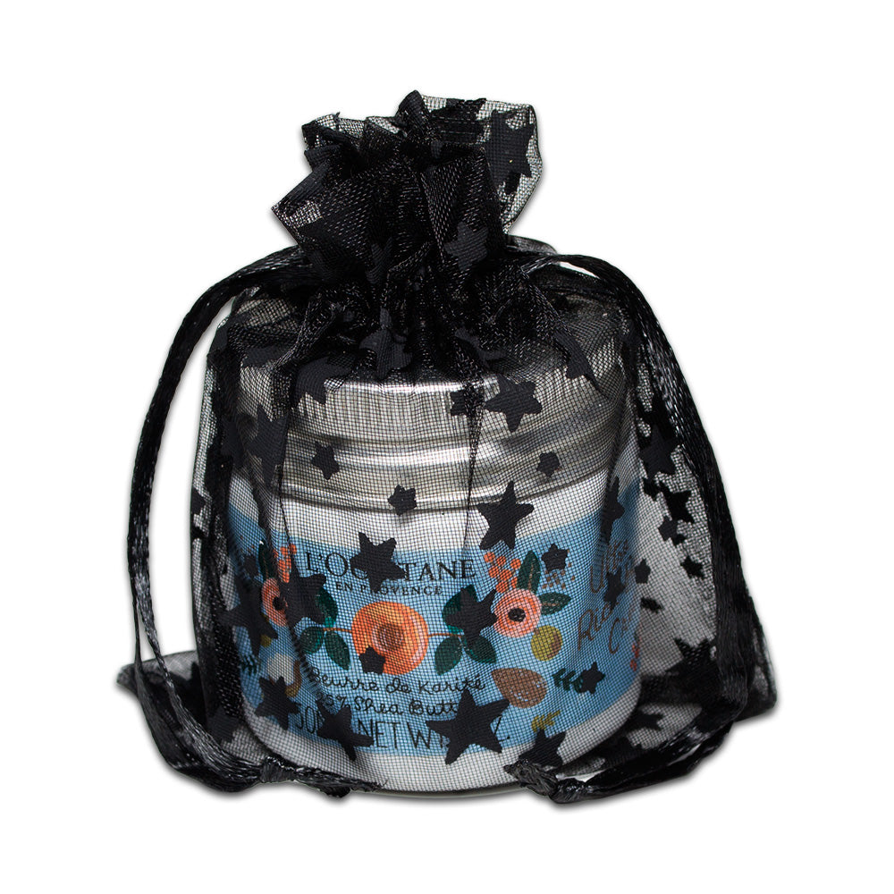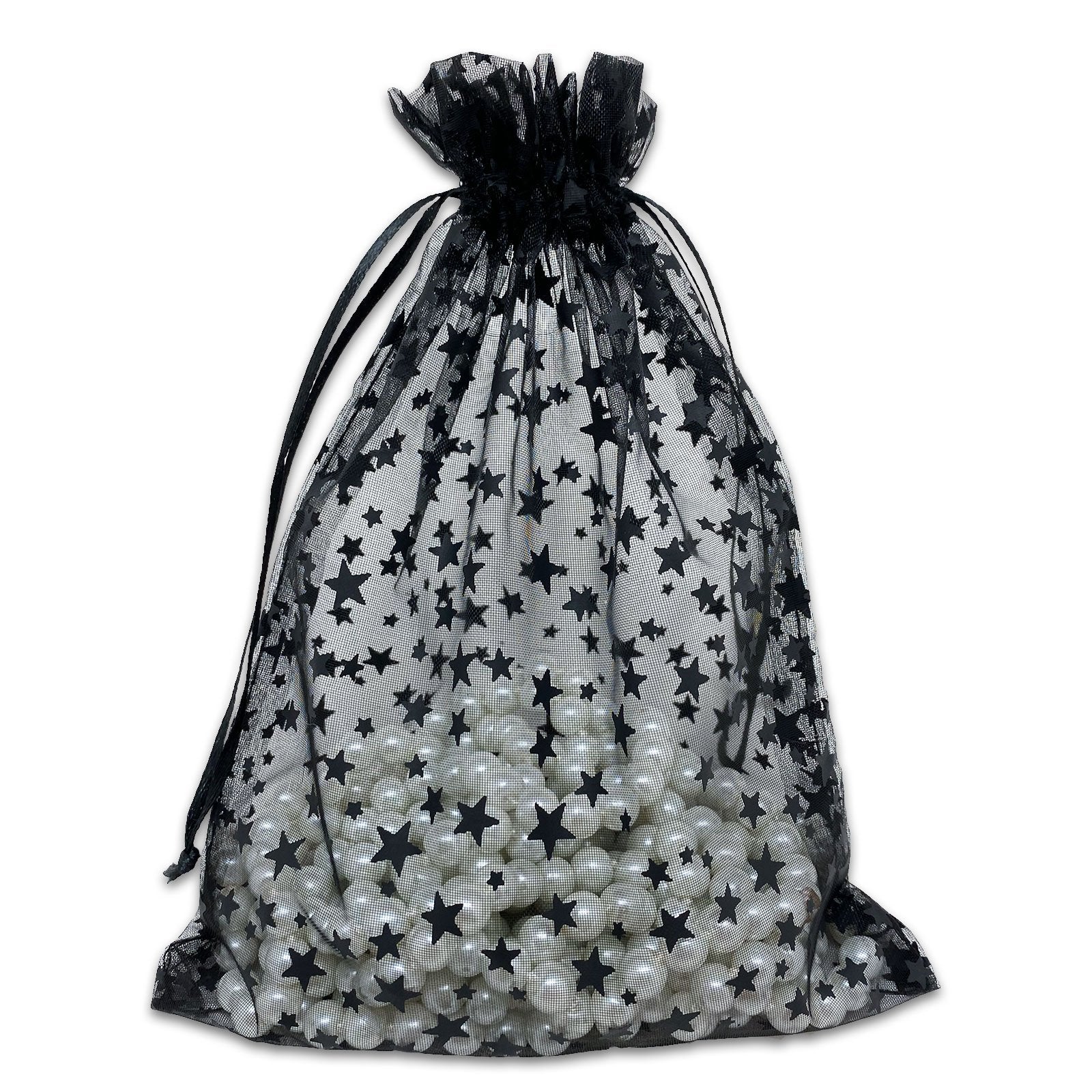 Black with Black Star Organza Drawstring Pouch Gift Bags