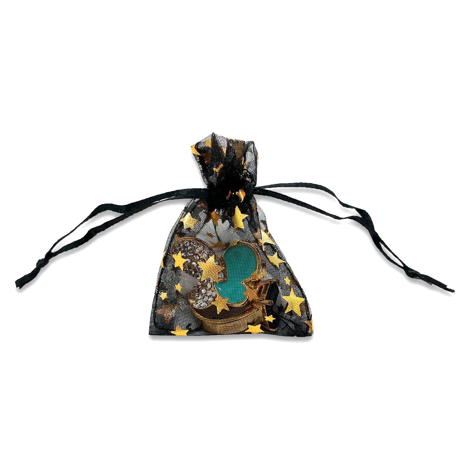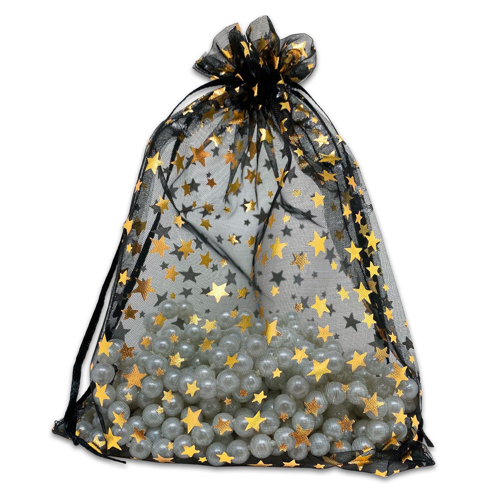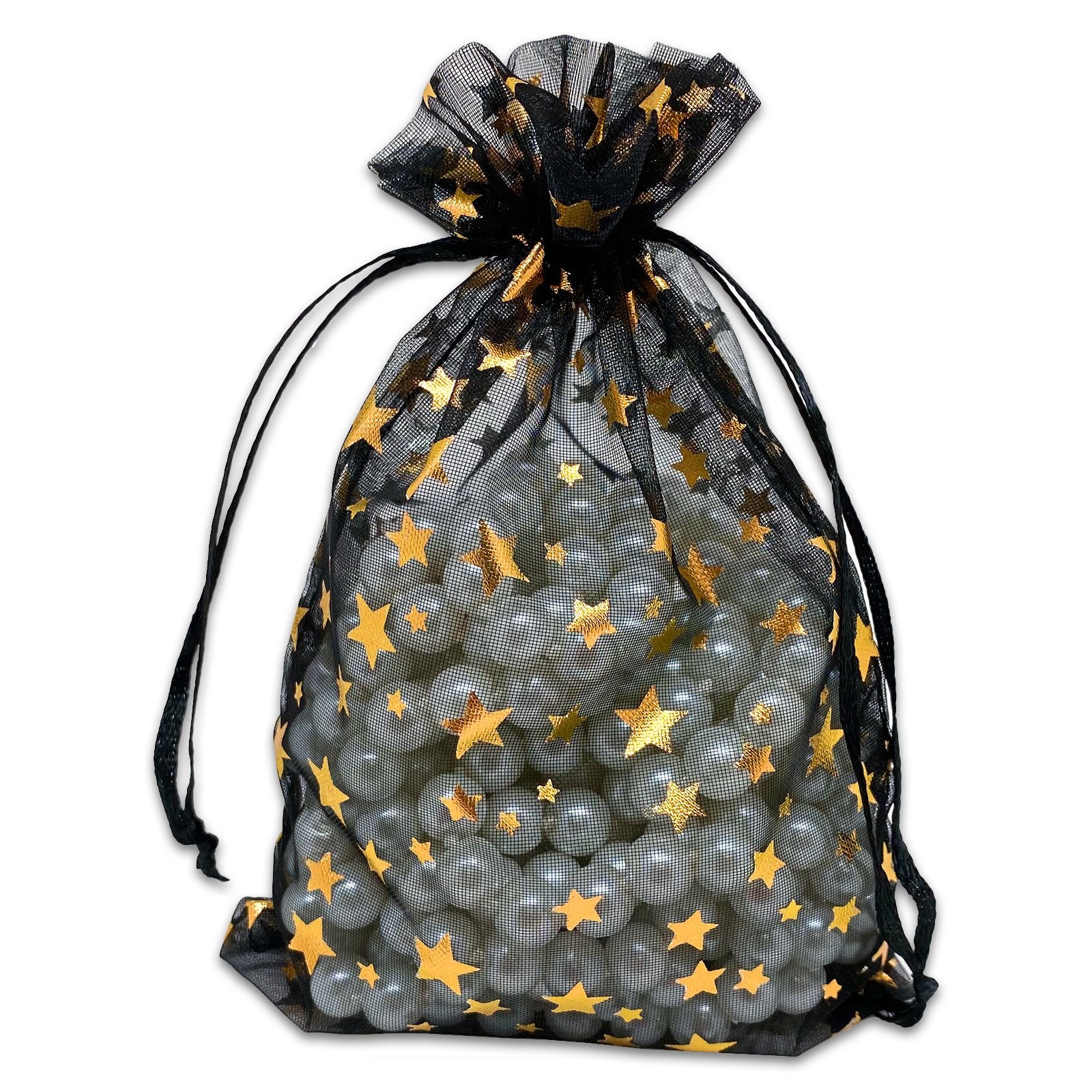 Black with Gold Star Organza Drawstring Pouch Gift Bags
