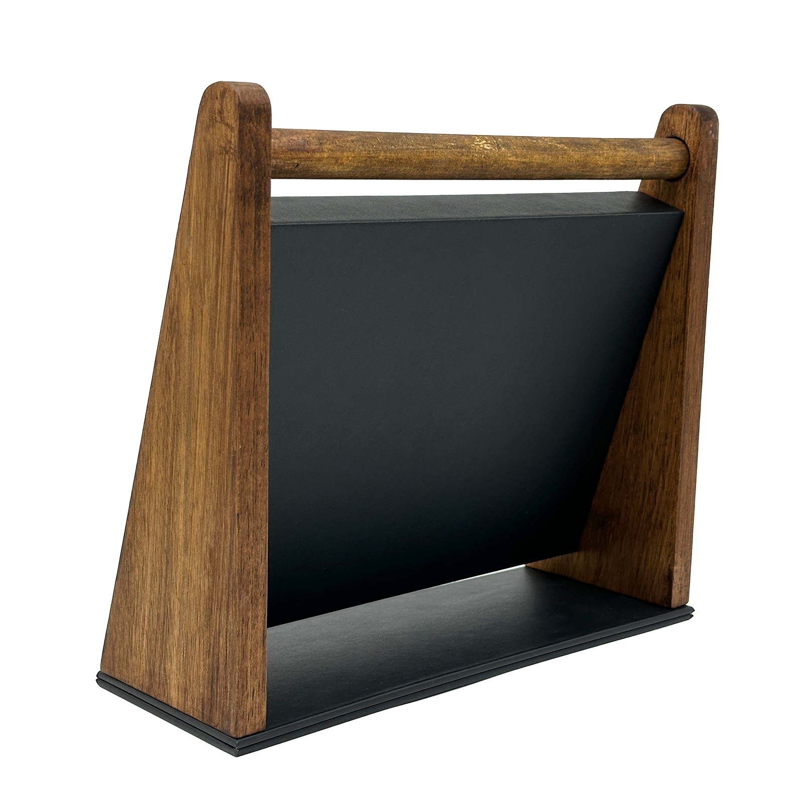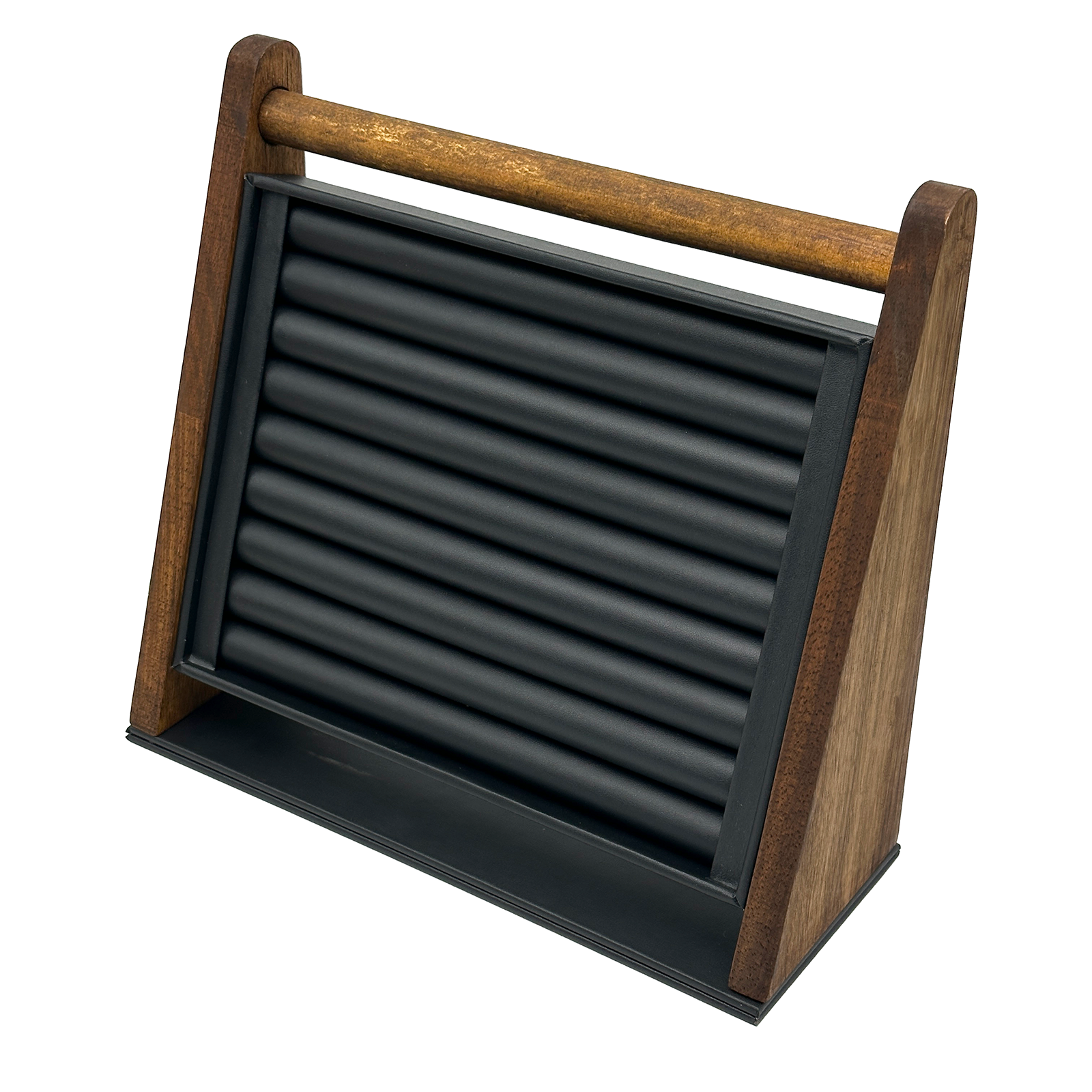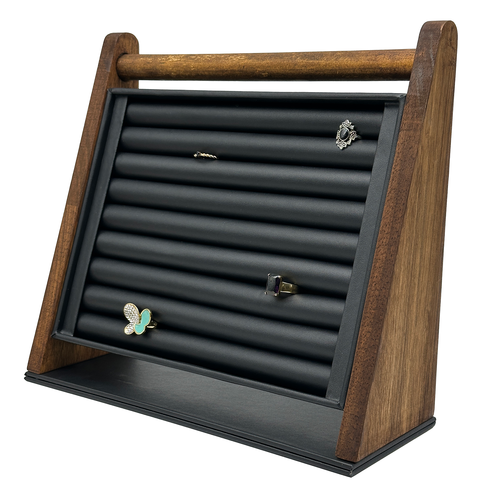 Dark Oak Wood and Black Leatherette Ring Jewelry Display