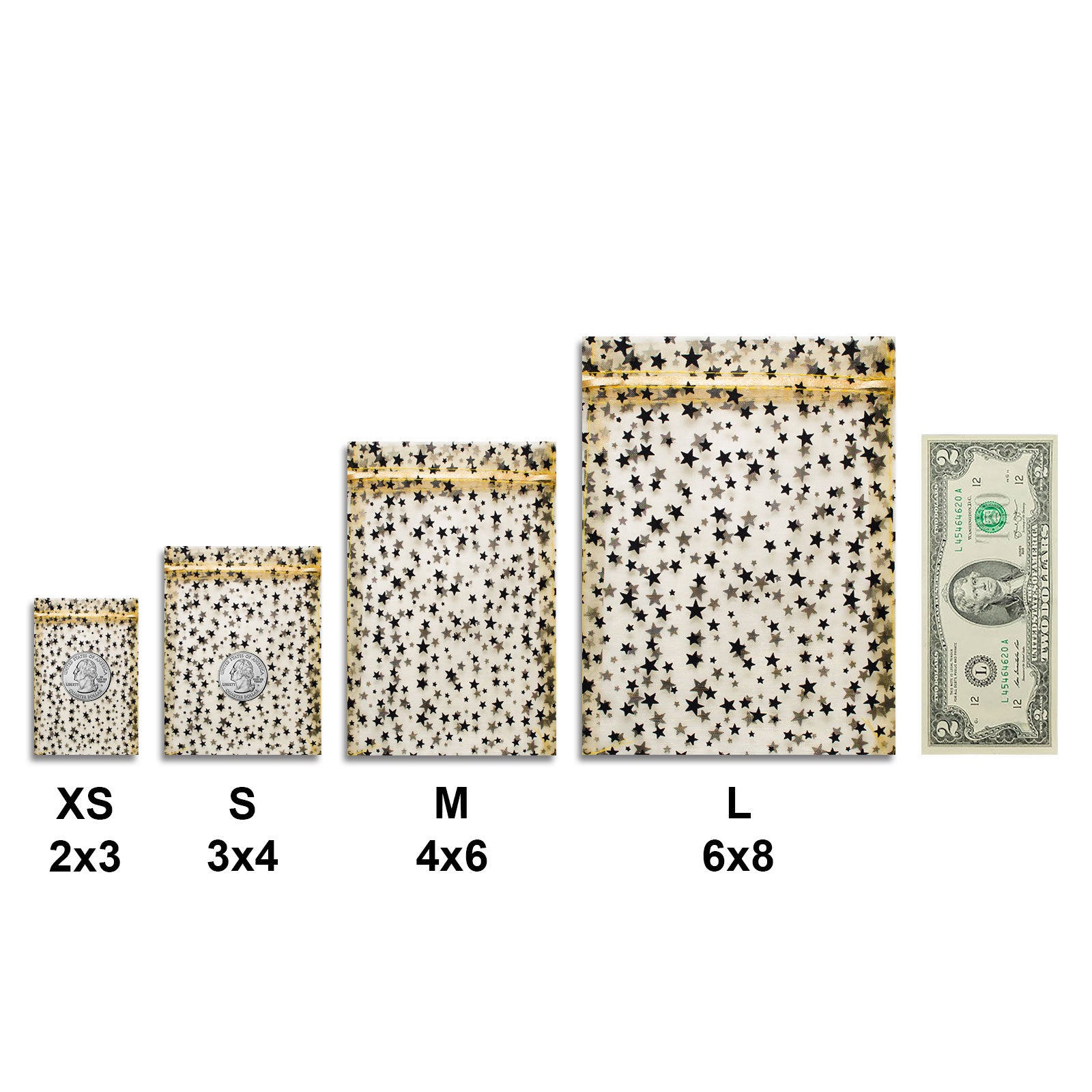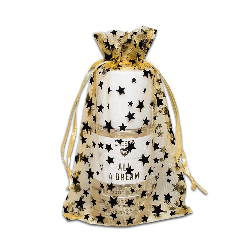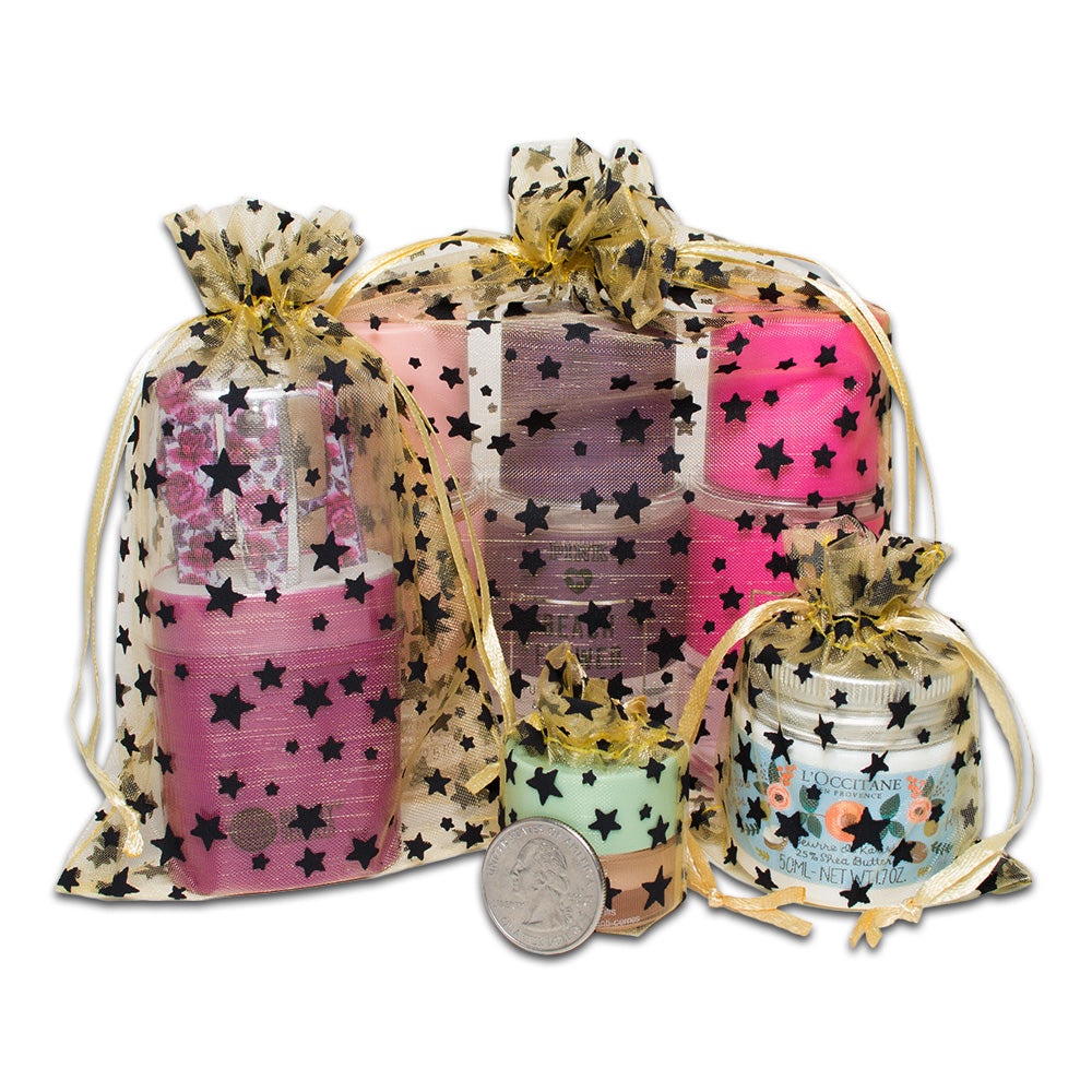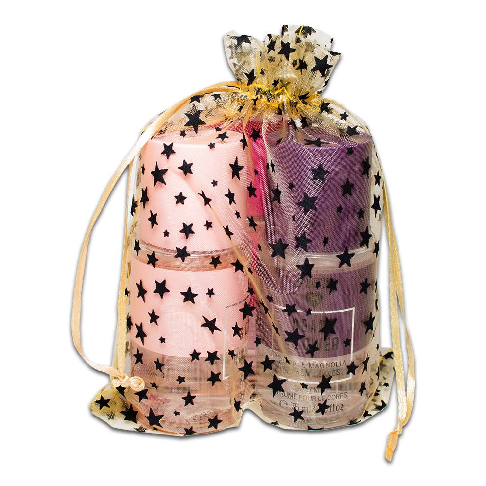 Gold with Black Star Organza Drawstring Pouch Gift Bags