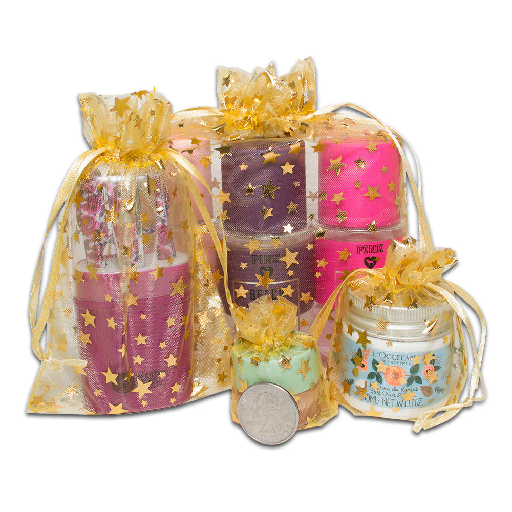 Gold with Gold Star Organza Drawstring Pouch Gift Bags