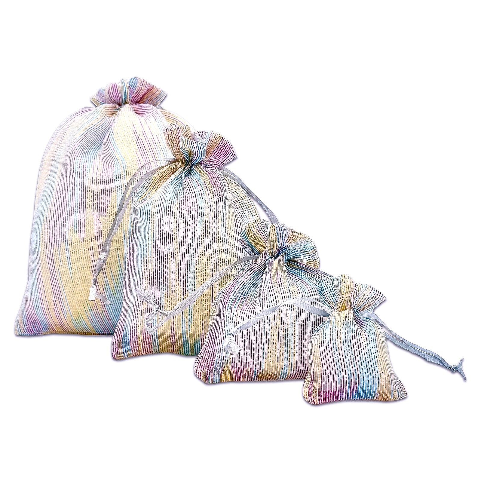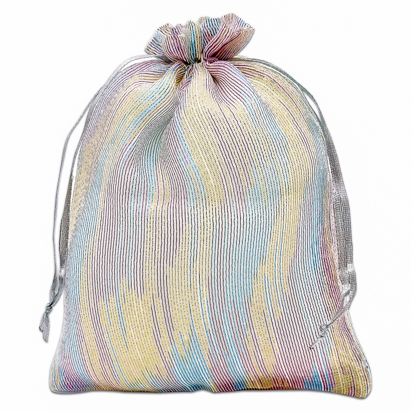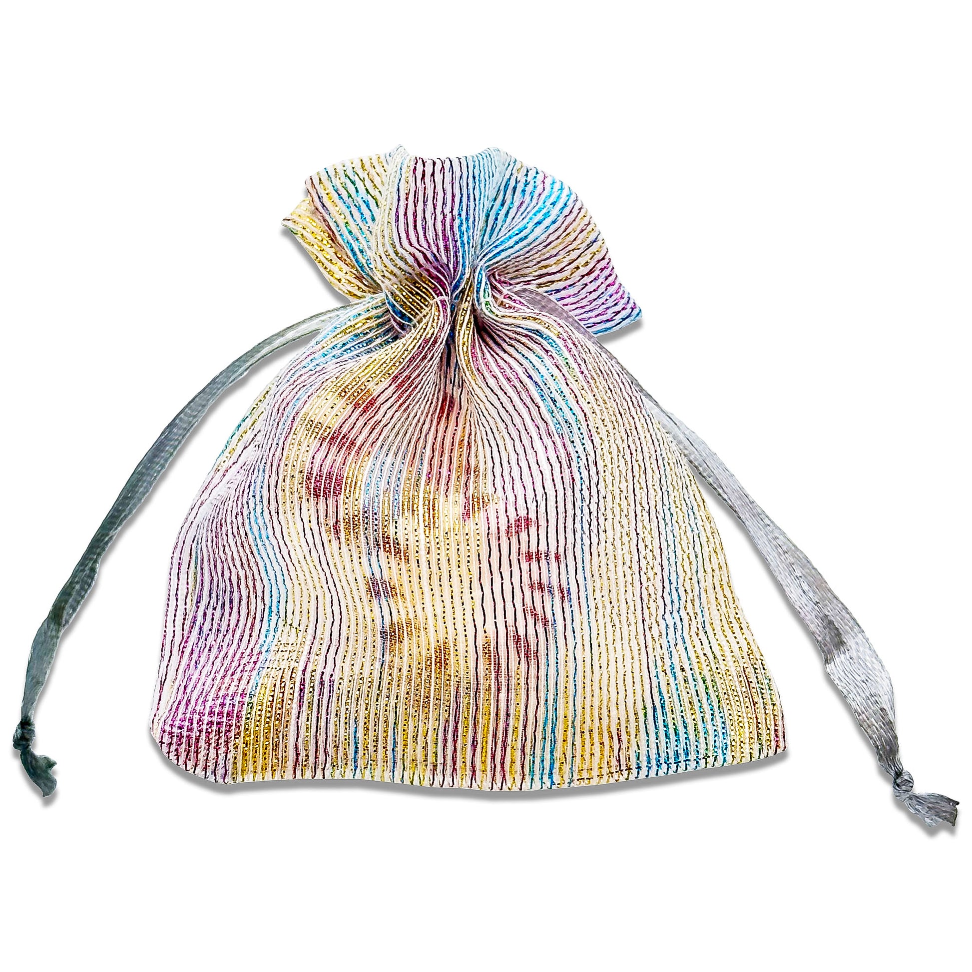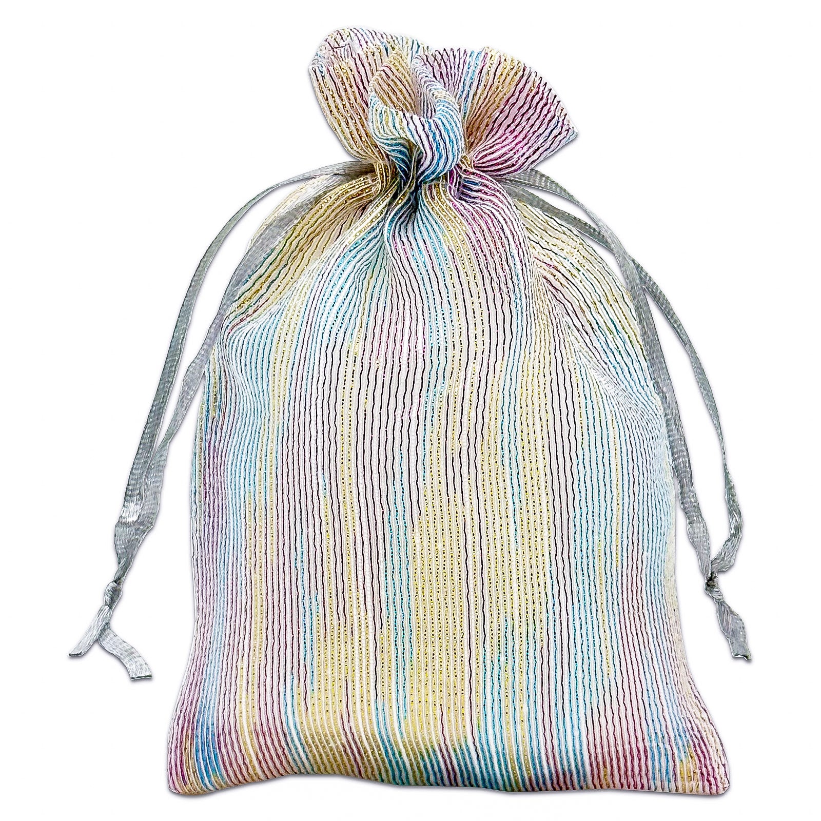 96-Pack Iridescent Striped Weave Organza Drawstring Pouch Gift Bags