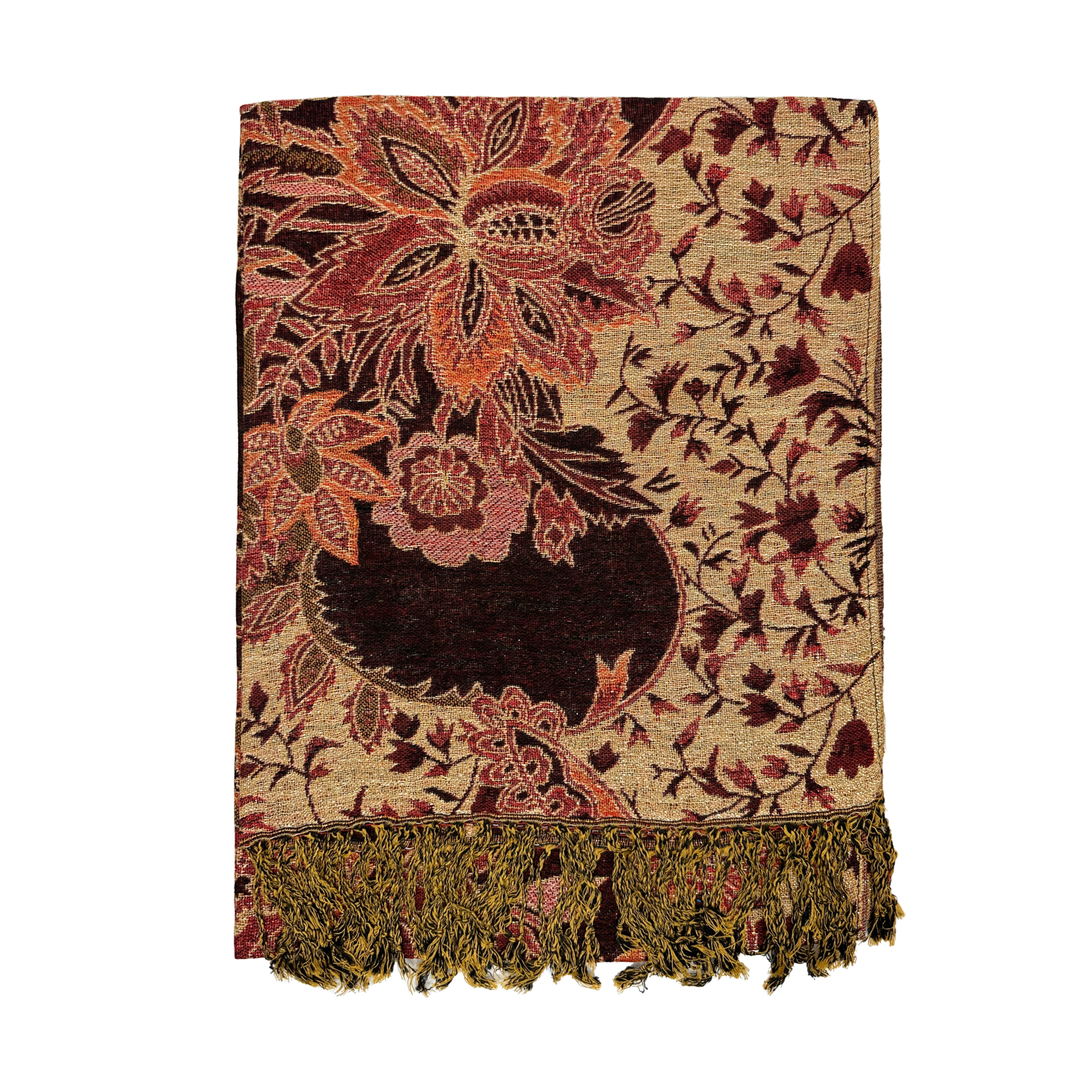Pashmina Red and Tan Flower Pattern Scarf