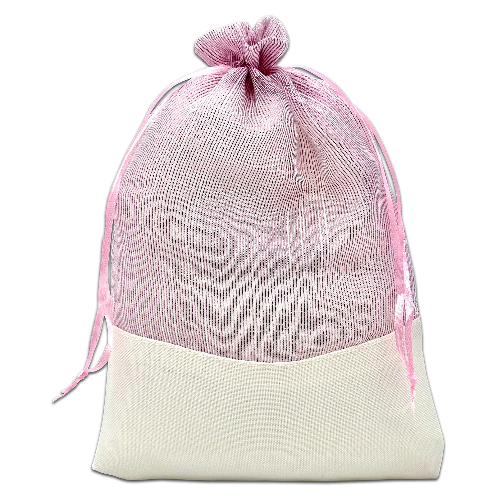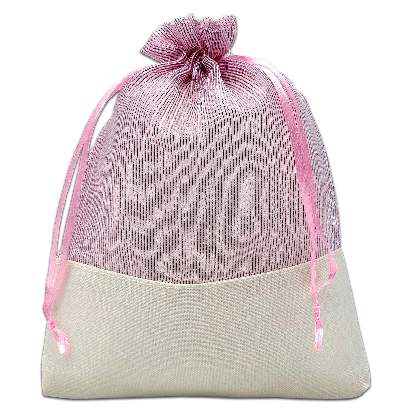Pink Organza and White Linen Drawstring Pouch Gift Bags