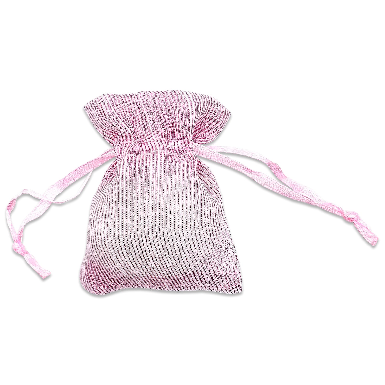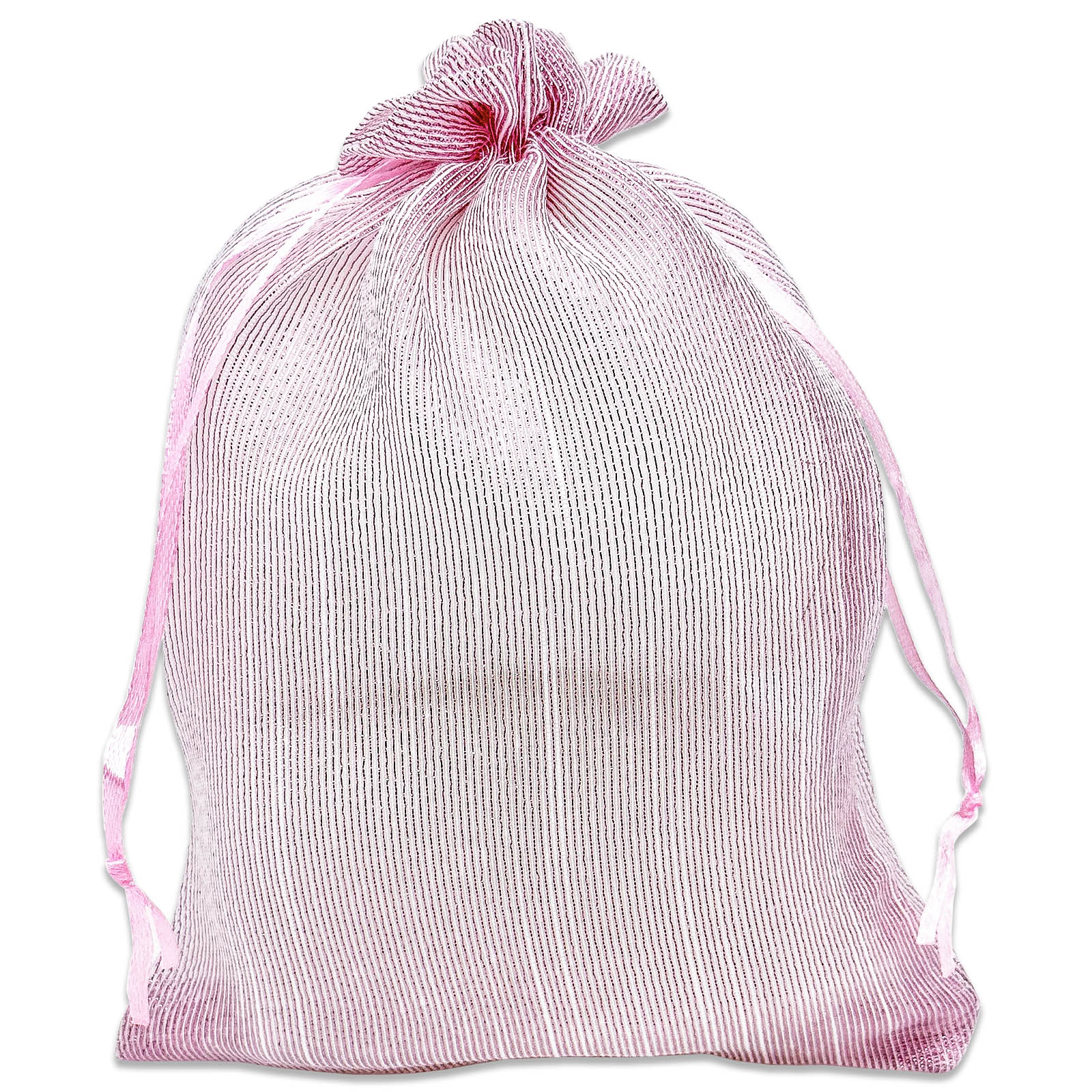 96-Pack Pink Striped Weave Organza Drawstring Pouch Gift Bags