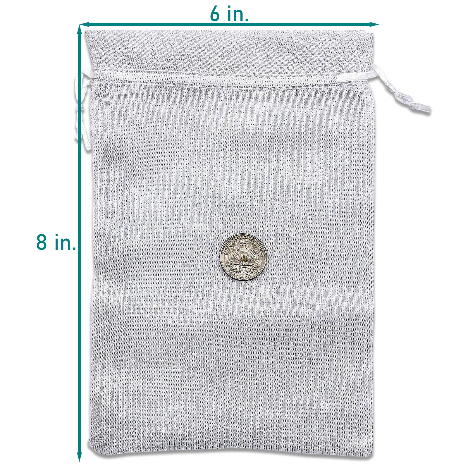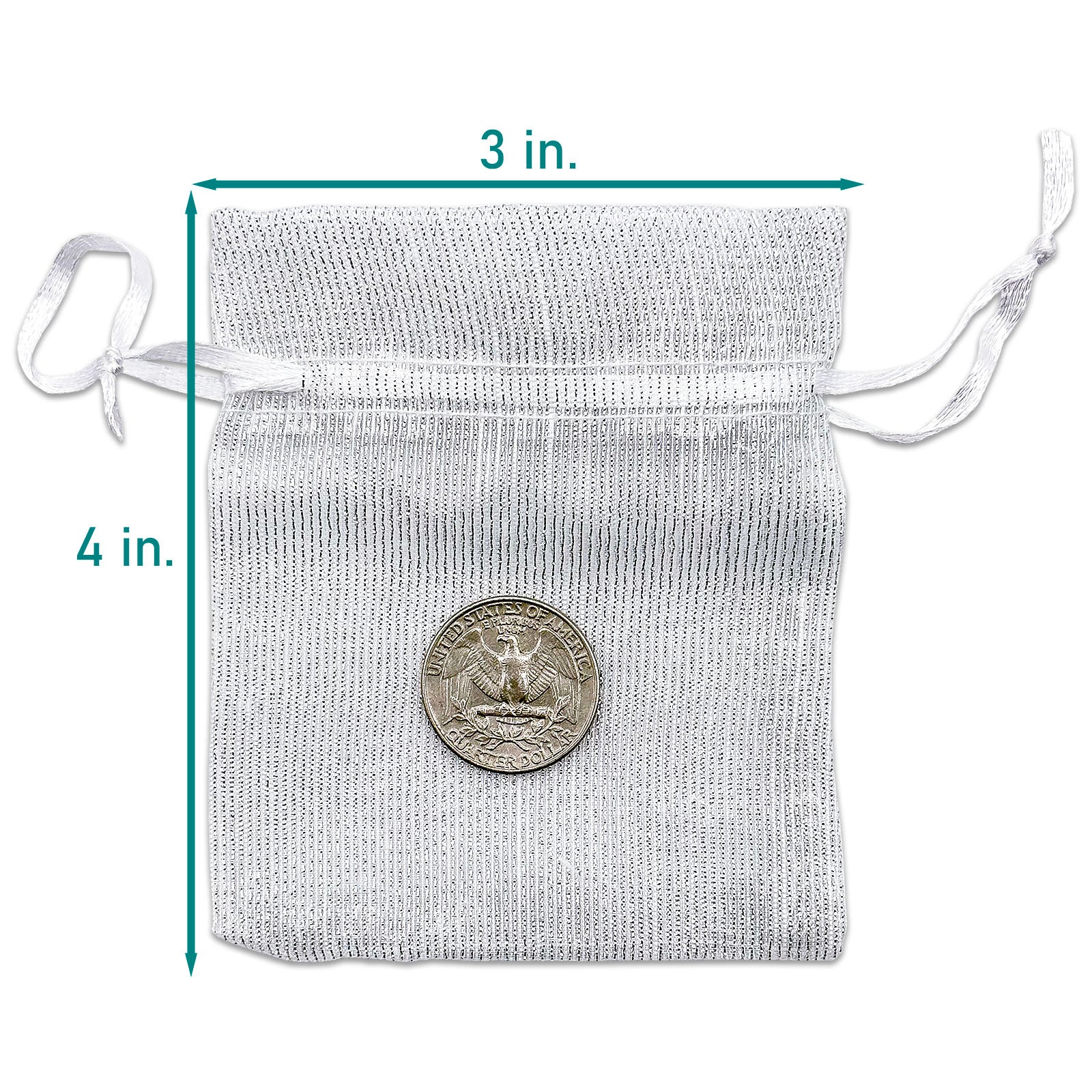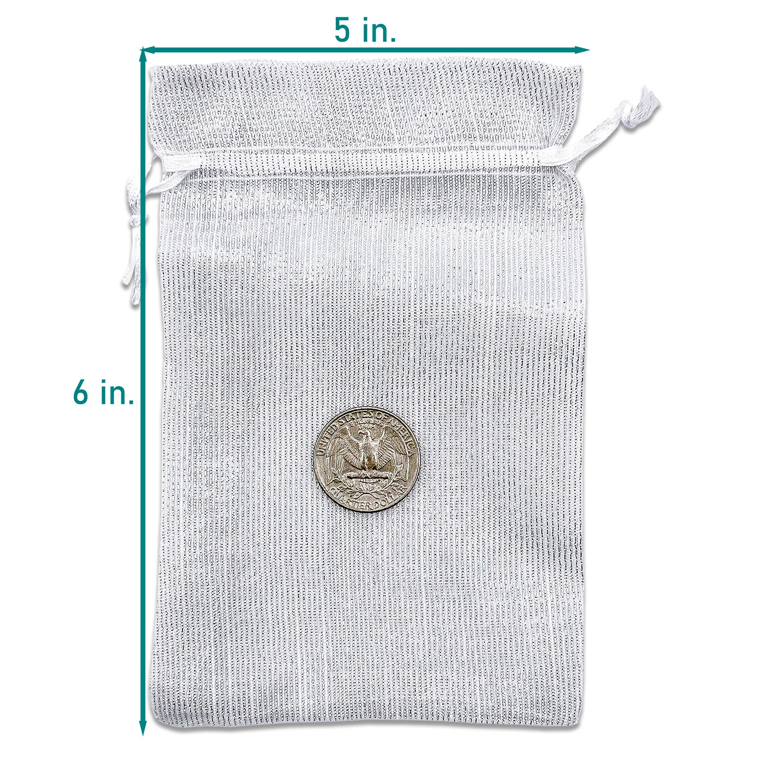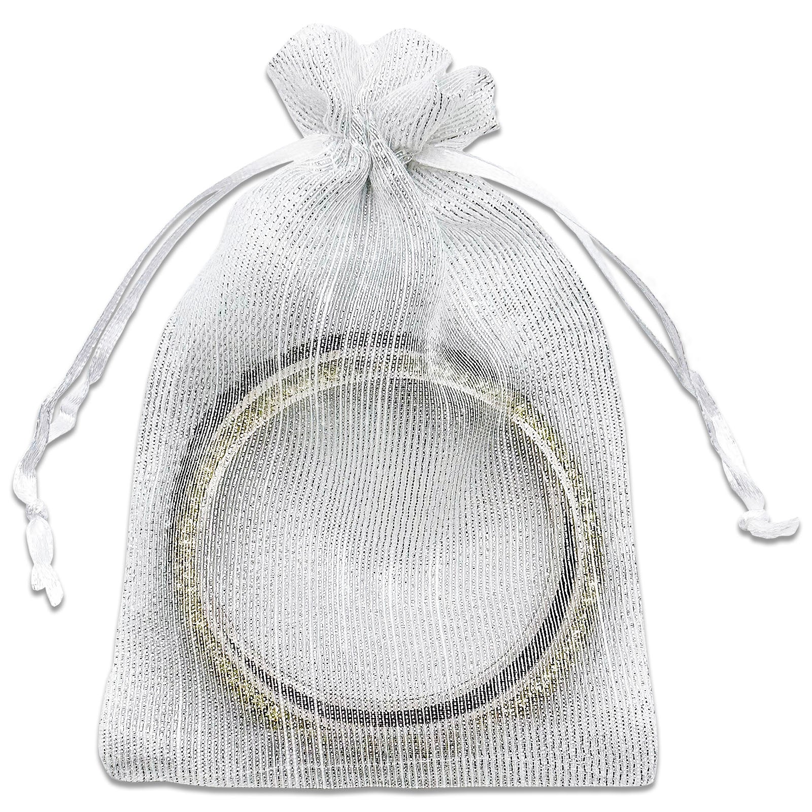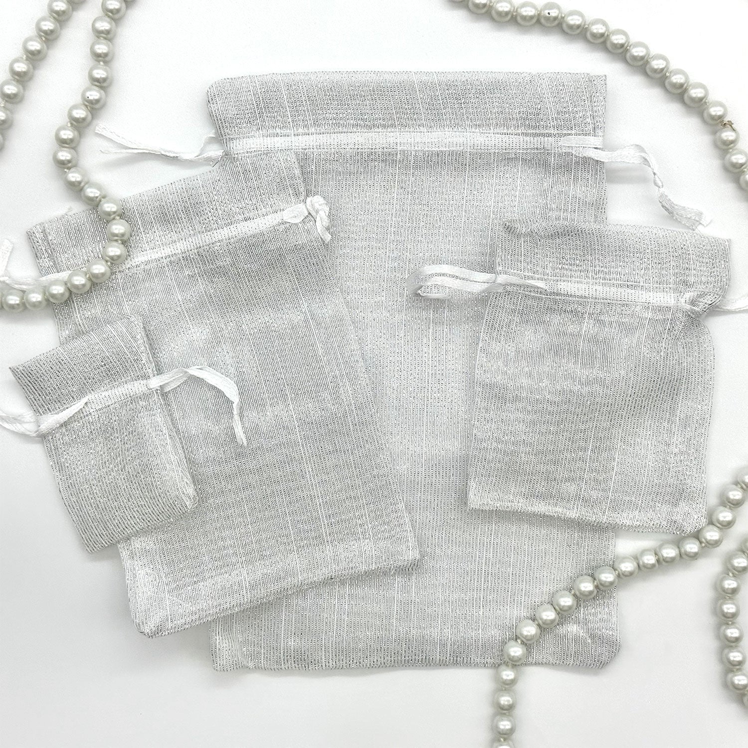 96-Pack Silver Striped Weave Organza Drawstring Pouch Gift Bags