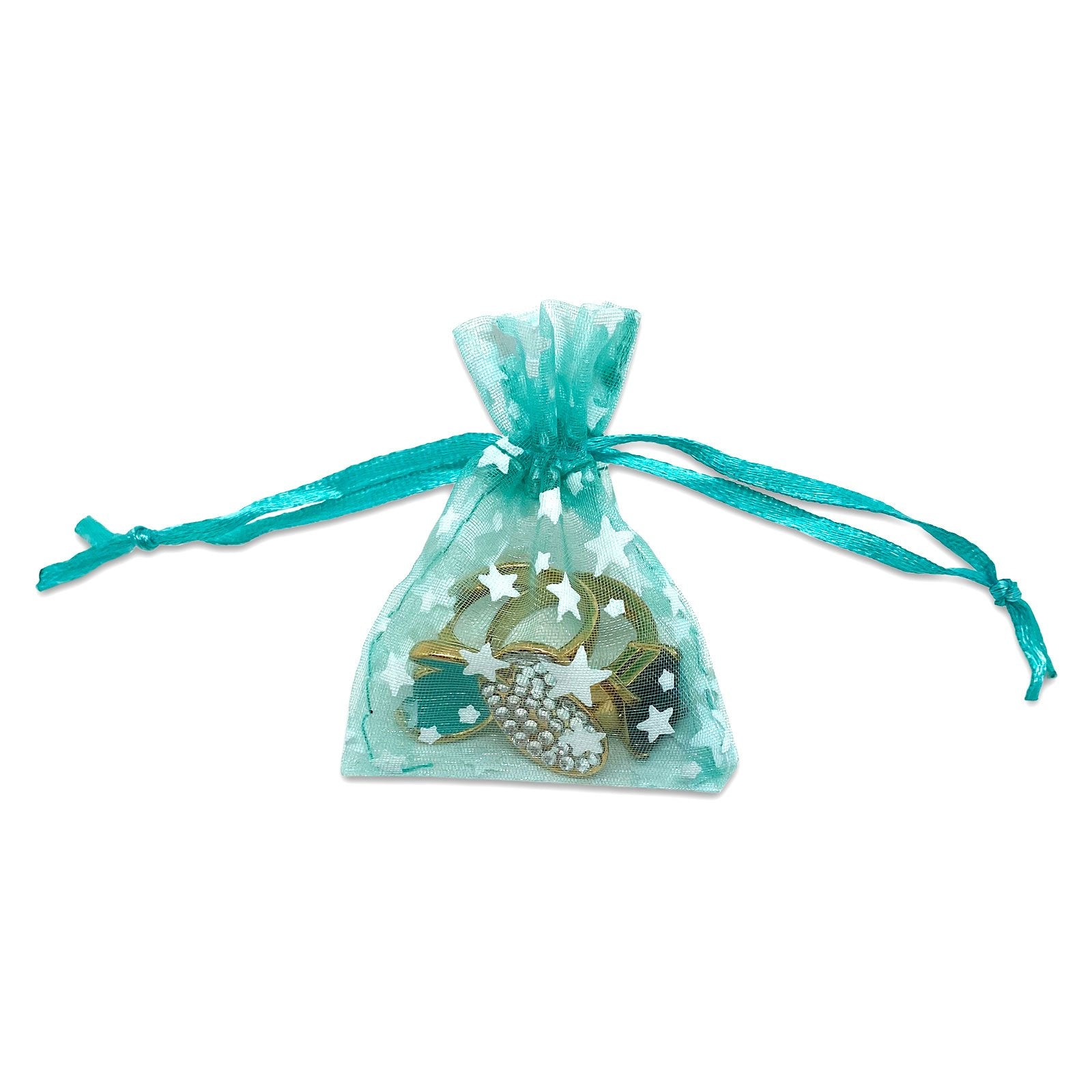 Teal with White Star Organza Drawstring Pouch Gift Bags