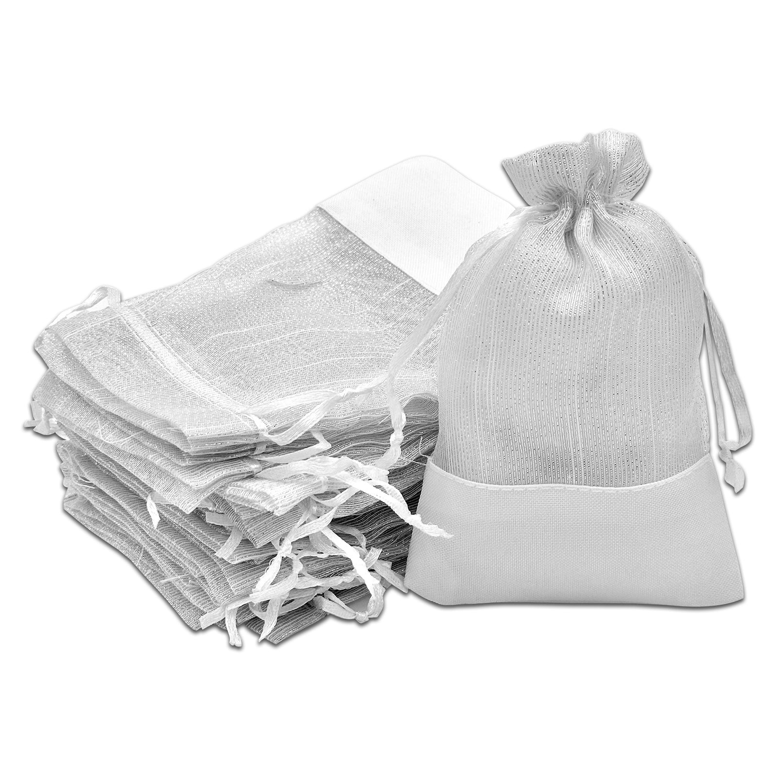 - Unique - smooth & soft linen weave bottom with see-through sheer organza top allows your guests to get a glimpse of what is inside.