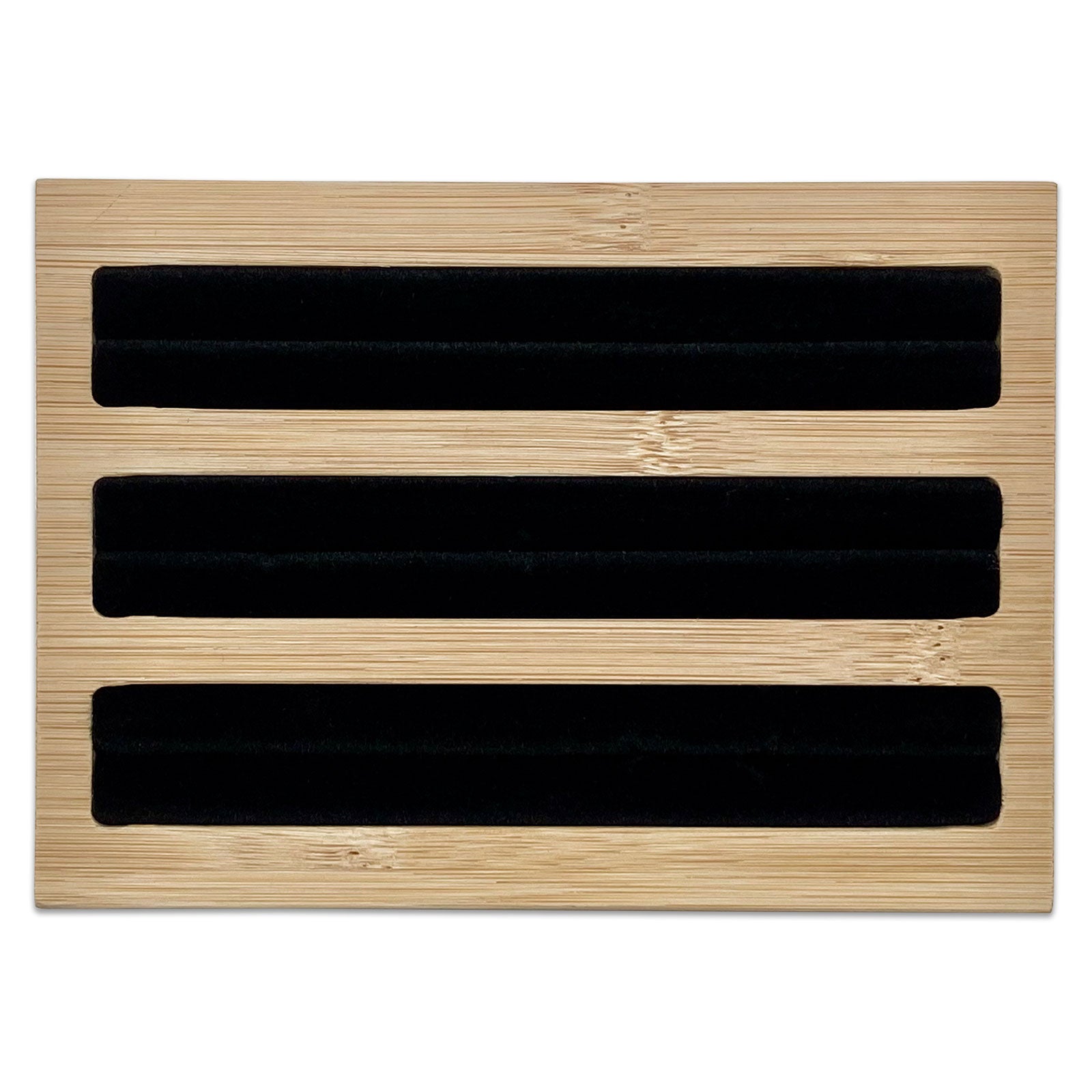 5 3/4" x 4" Wood Black Velvet 3 Row Ring Display Stand